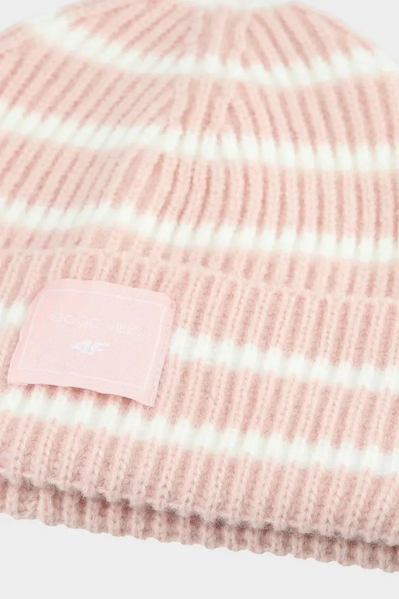 4F Dziewczęca Zimowa Czapka W Paski JWAW24ACAPF417-56S Jasnoróżowa Różowy