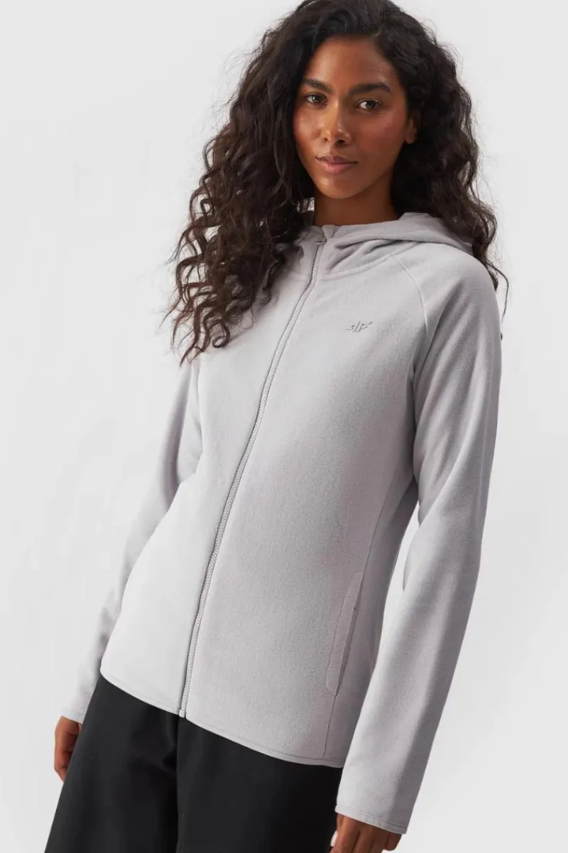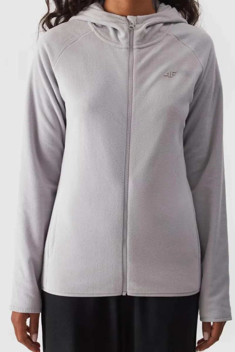 Bluza damska jest wykonana z gładkiego i miękkiego w dotyku polaru, który cechuje się bardzo dobrą izolacją termiczną, a przy tym oddycha i szybko schnie. Technologia 4FWarm wspiera komfort cieplny. Ciepły polar damski posiada stójkę z nieodpinanym kapturem bez regulacji. Mankiety zakończone elastyczną lamówką. Po bokach znajdują się 2 kieszenie otwarte. Zapinany na jednokierunkowy zamek główny. Raglanowe rękawy nie ograniczają ruchów. Materiał główny: Poliester 100% Podszewka: Bawełna 60%, Poliester 40%