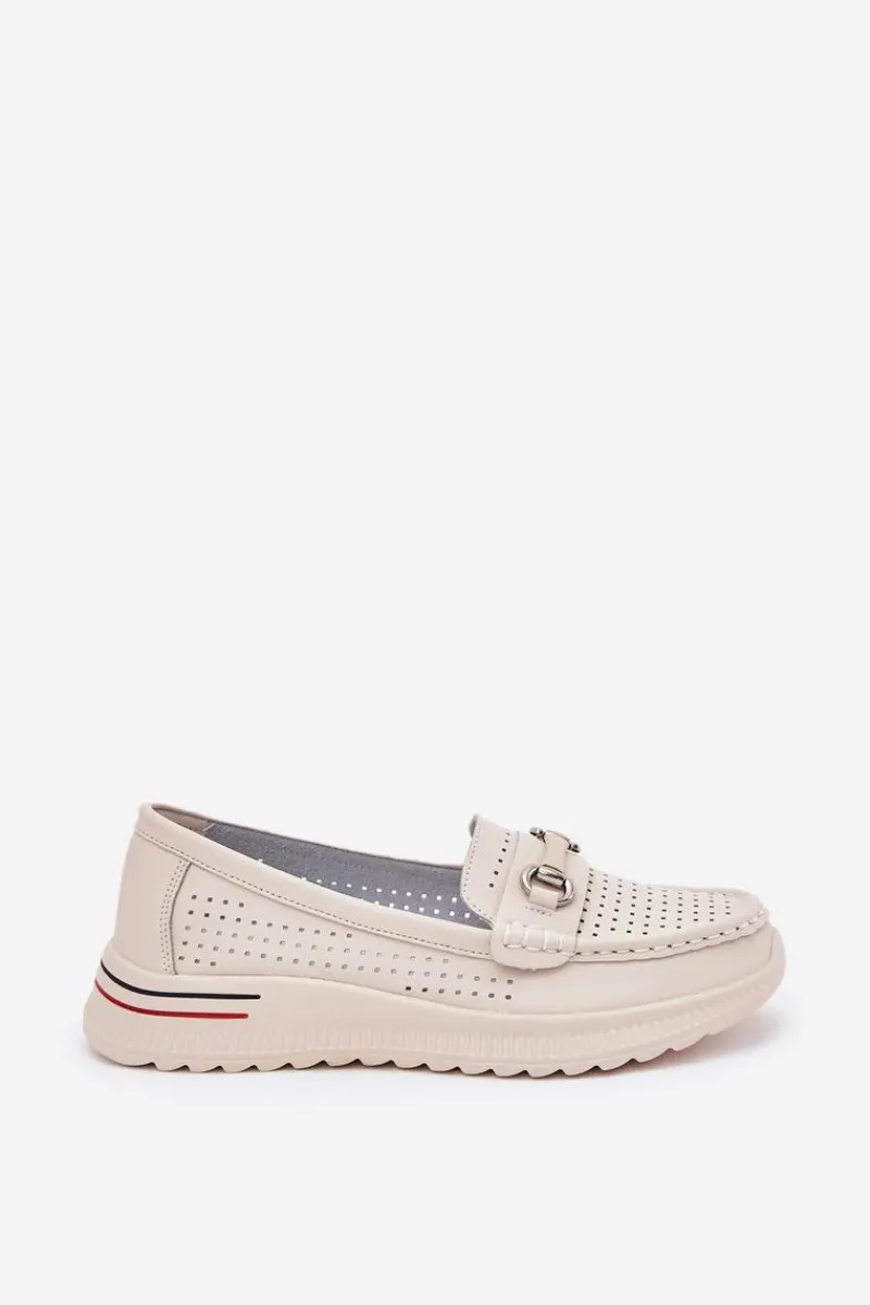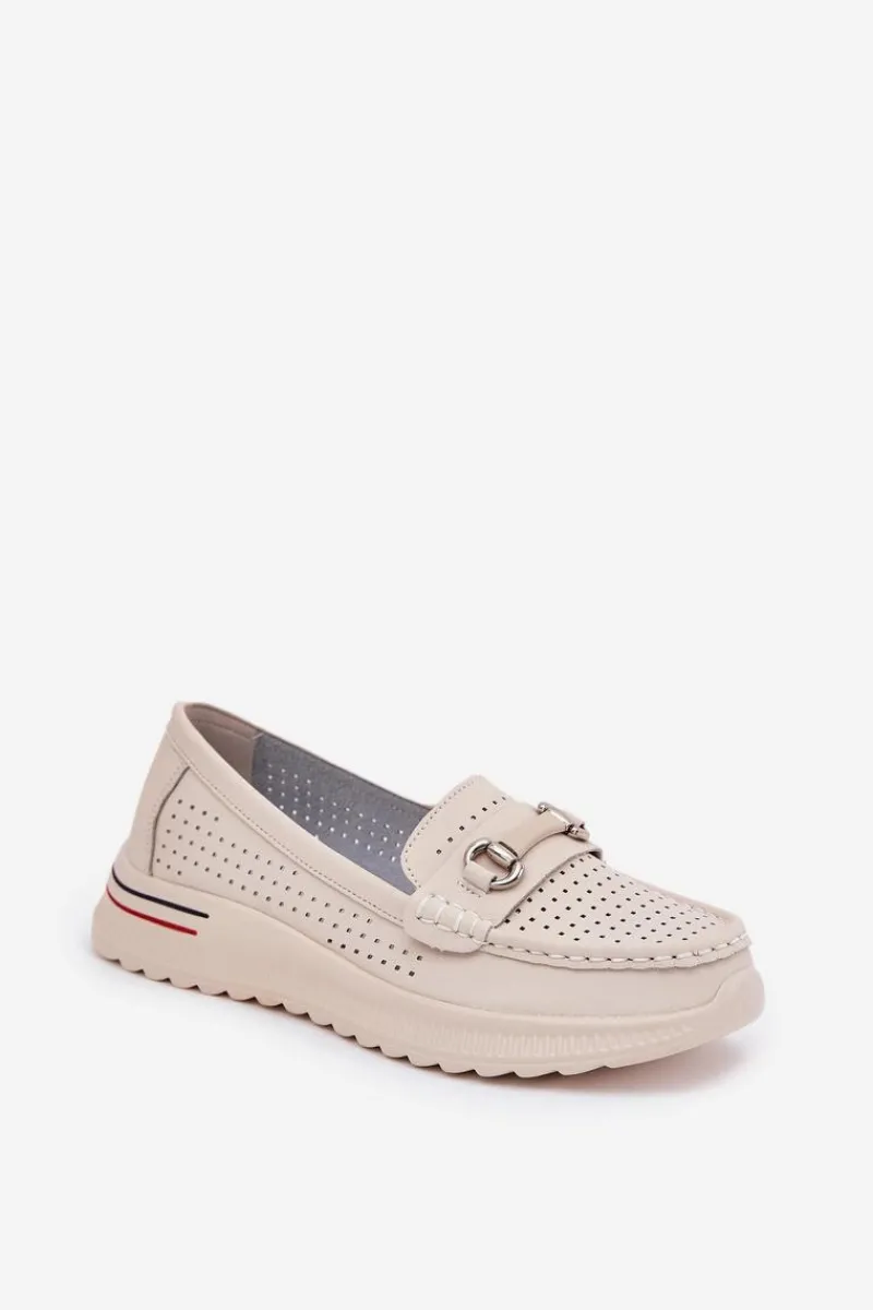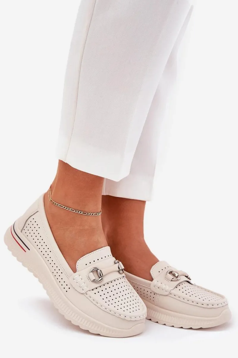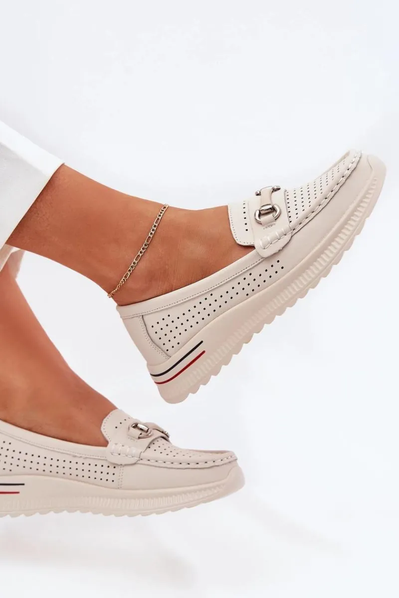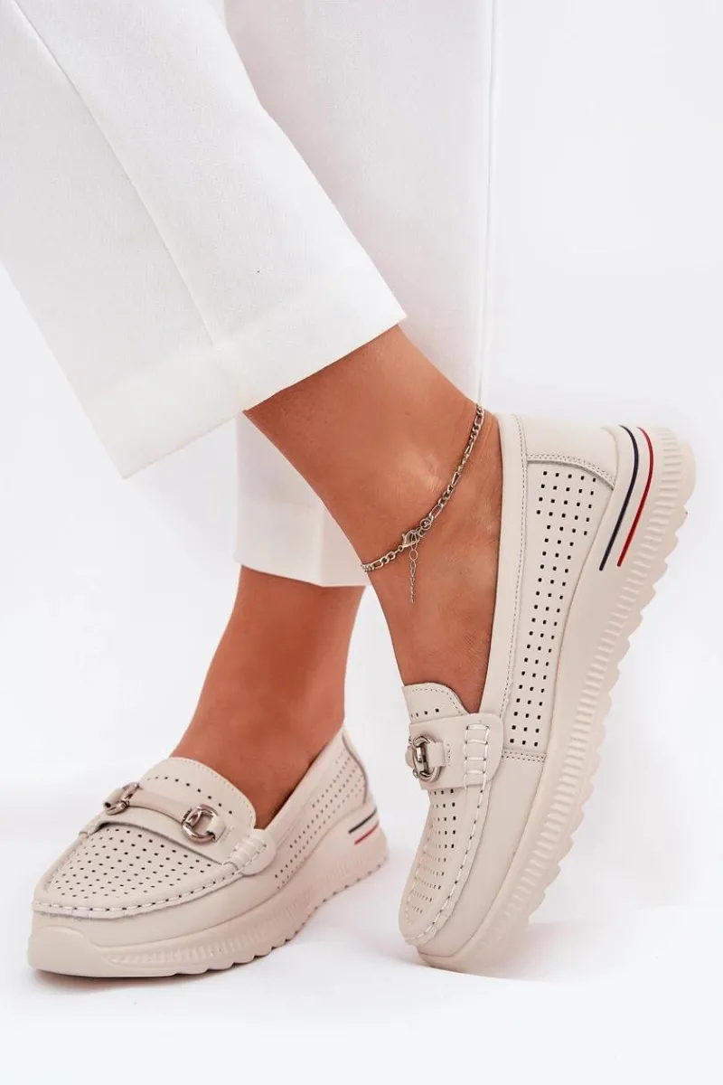 Ażurowe baleriny z naturalnej skóry to stylowy i wygodny wybór na wiosnę i lato. Delikatny ażurowy wzór sprawia, że buty są przewiewne, co zapewnia komfort nawet w cieplejsze dni. Osadzone na platformie, dodają lekkości sylwetce, jednocześnie zapewniając stabilność i wygodę przez cały dzień. Z przodu znajduje się subtelna ozdoba, która nadaje eleganckiego charakteru, a skórzana wkładka gwarantuje wygodę na każdym kroku. Lekkie i komfortowe. Idealne do letnich spacerów czy spotkań na świeżym powietrzu! Przy wyborze rozmiaru prosimy sugerować się tabelą rozmiarów.