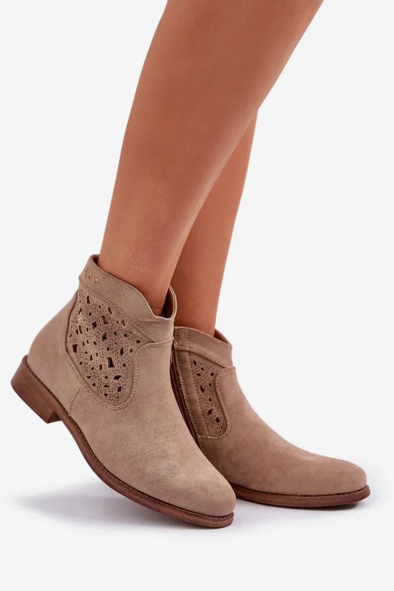 Botki damskie od marki S.Barski, wykonane z eko zamszu, to elegancka i wygodna propozycja na chłodniejsze dni. Osadzone na płaskim obcasie, zapewniają stabilność i komfort przez cały dzień. Zapinane na zamek, co ułatwia ich zakładanie. Zaokrąglone noski dodają im subtelnego charakteru, a ażurowa cholewka nadaje lekkości i nowoczesnego stylu. Te botki to doskonały wybór do codziennych stylizacji! Przy wyborze rozmiaru prosimy sugerować się tabelą rozmiarów.