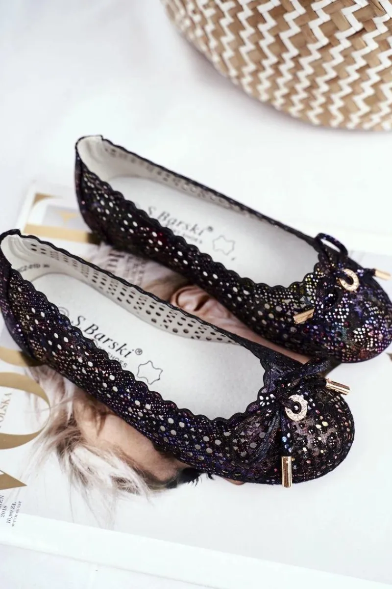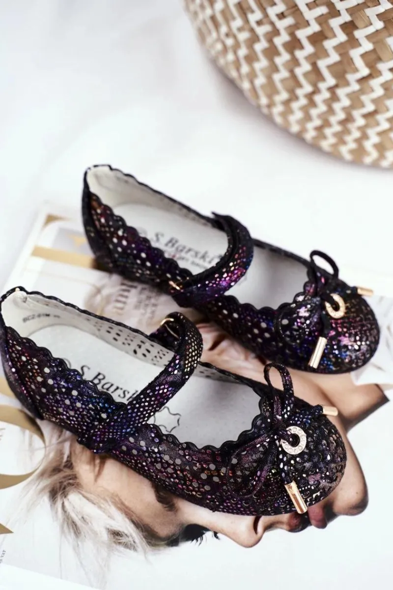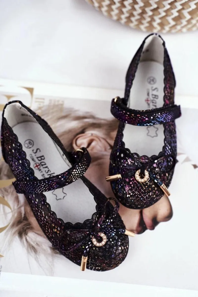 Balerinki Dziecięce>Damskie buty S.Barski Dziecięce Czarne Ażurowe Balerinki na Rzep Barski Remtro
