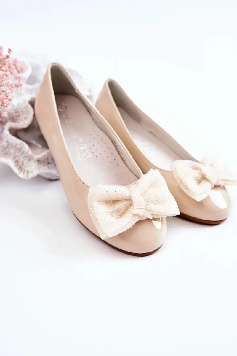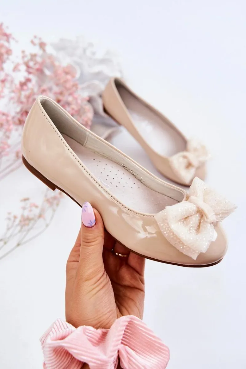 Urocze baleriny dziecięce przypadną do gustu niejednej małej księżniczce! Wykonane z lakierowanej eko skóry. Z przodu znajduje się piękna kokarda wykonana z tkaniny z błyszczącymi dodatkami. Profilowana, wykonana z naturalnej skóry wkładka jest miękka i komfortowa w użytkowaniu. Płaski obcas oraz antypoślizgowa podeszwa świetnie sprawdzą się podczas spacerów czy zabaw. Koniecznie sprawdź także pozostałe modele dziecięcych balerinek! Rozmiary 25-30 posiadają gumkę, natomiast 31-36 nie posiadają gumki. Przy wyborze rozmiaru prosimy sugerować się tabelą rozmiarów.