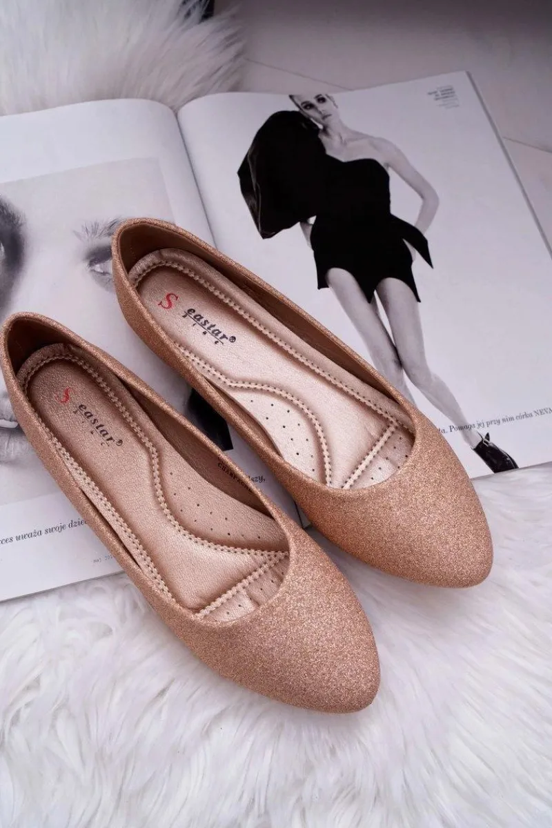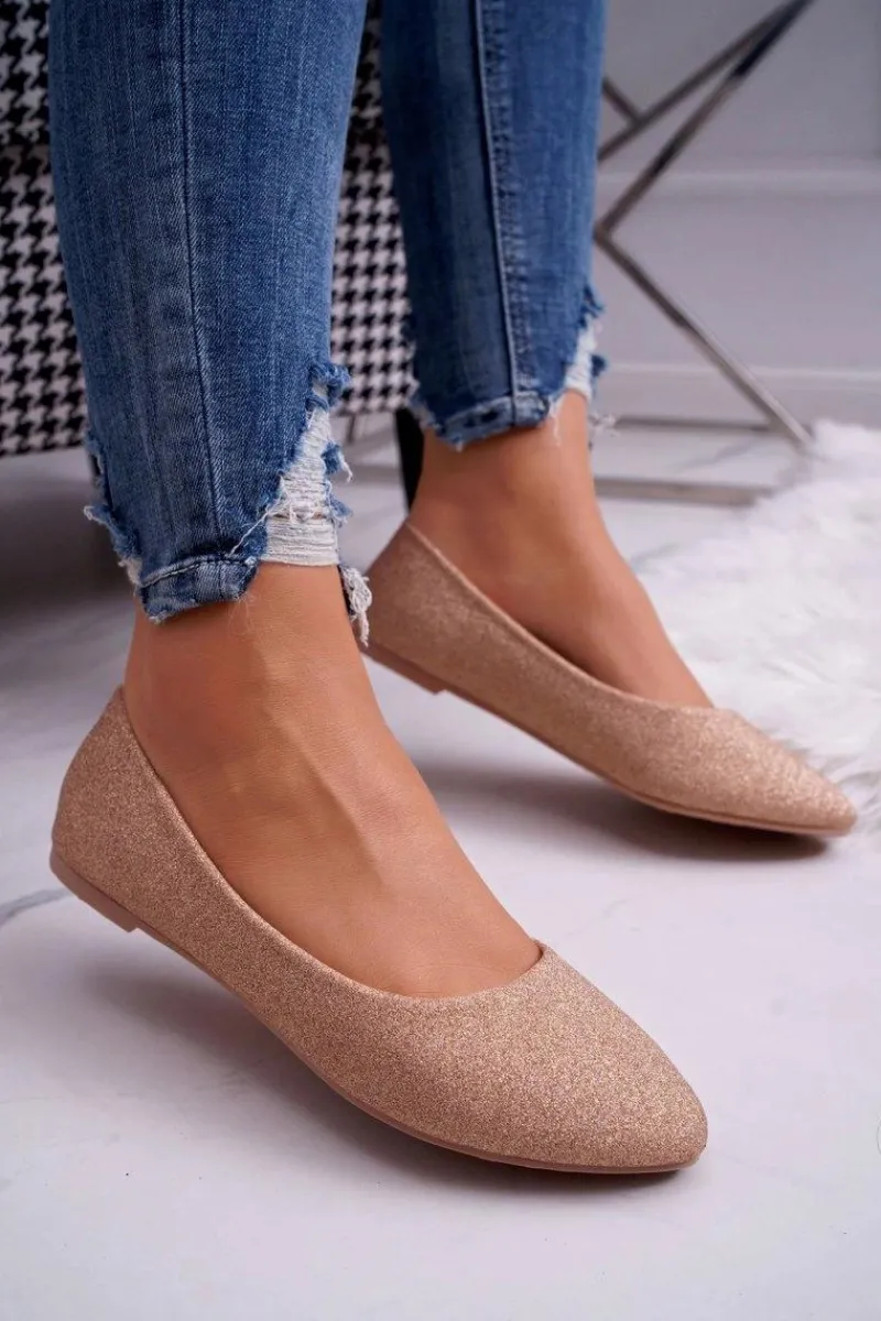 Delikatne baleriny ozdobione brokatem. Buty wykonane są ze skóry ekologicznej, posiadają profilowaną wkładkę. Przy wyborze rozmiaru prosimy sugerować się tabelą rozmiarów.