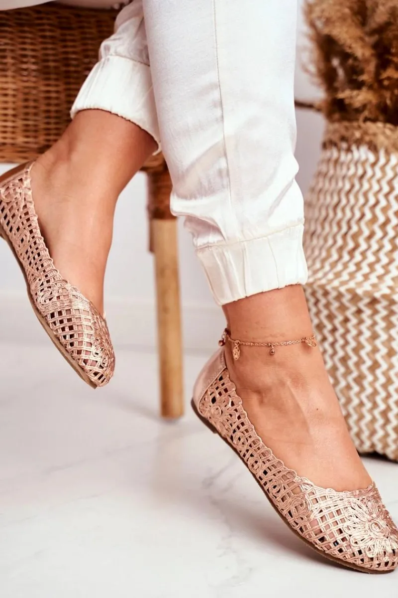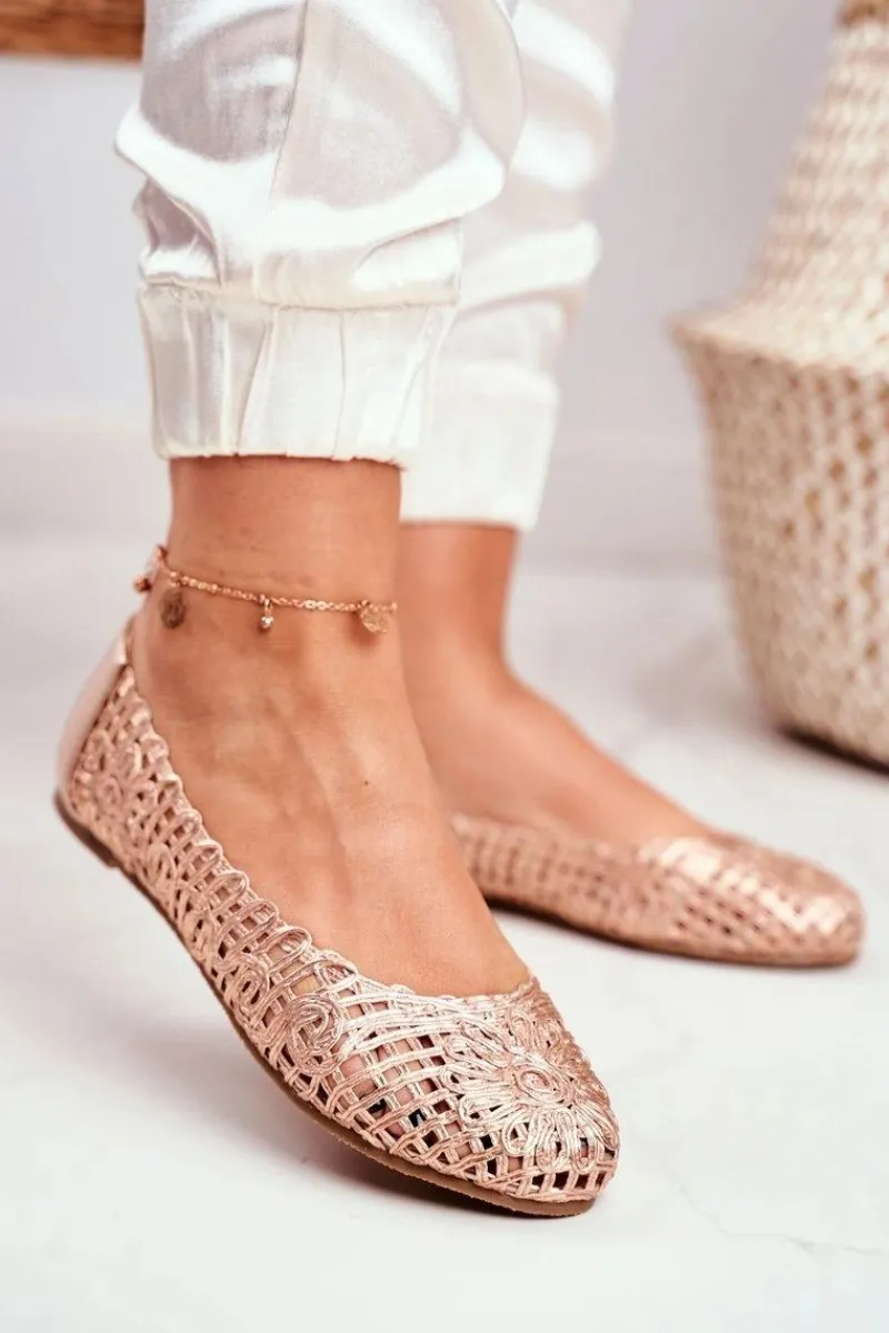 Baleriny Klasyczne>Boto Lu Boo Damskie Baleriny Różowe Złoto Ażurowe Plecione Carry
