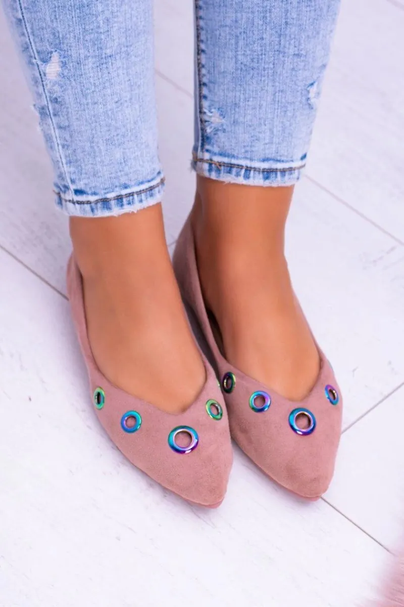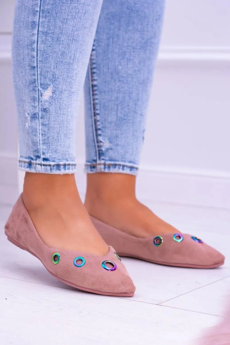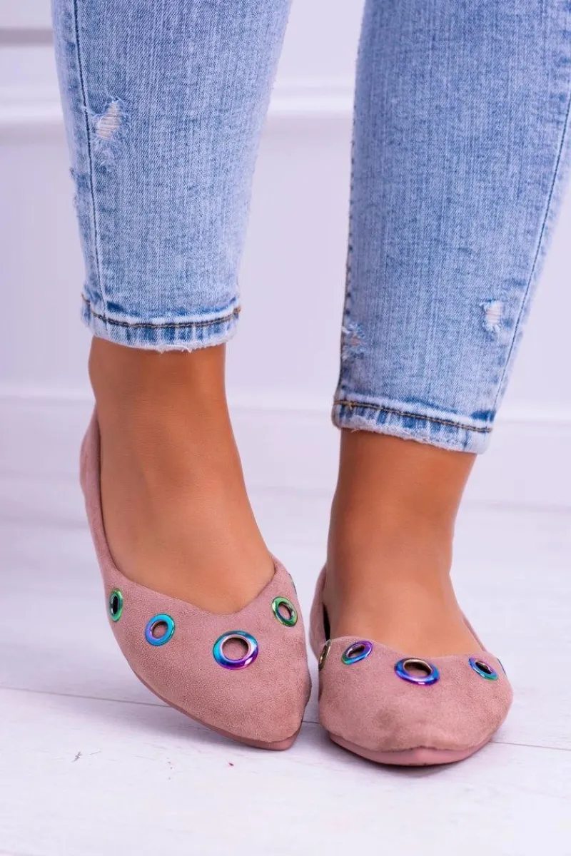 Baleriny Klasyczne>Boto Lu Boo Różowe Baleriny W Szpic Benzynowe Oczka Octavia