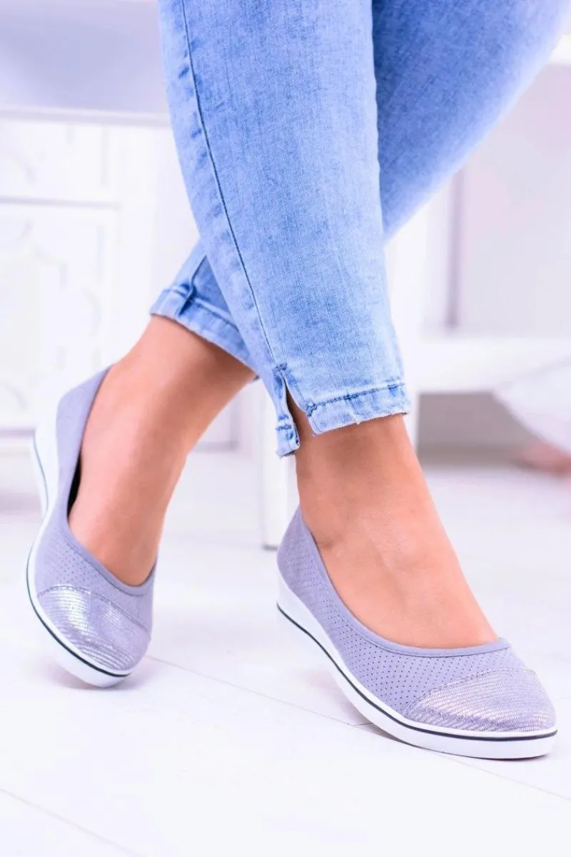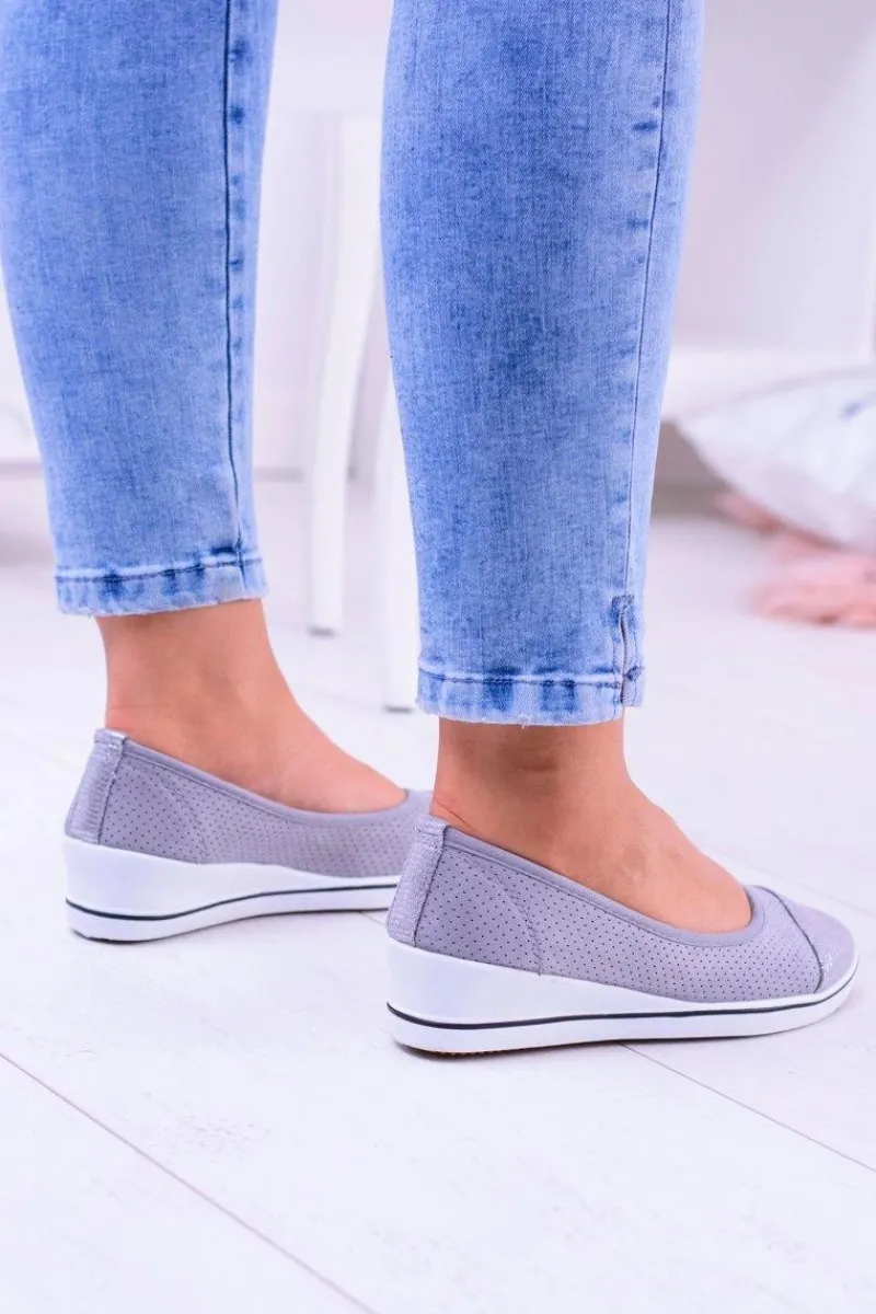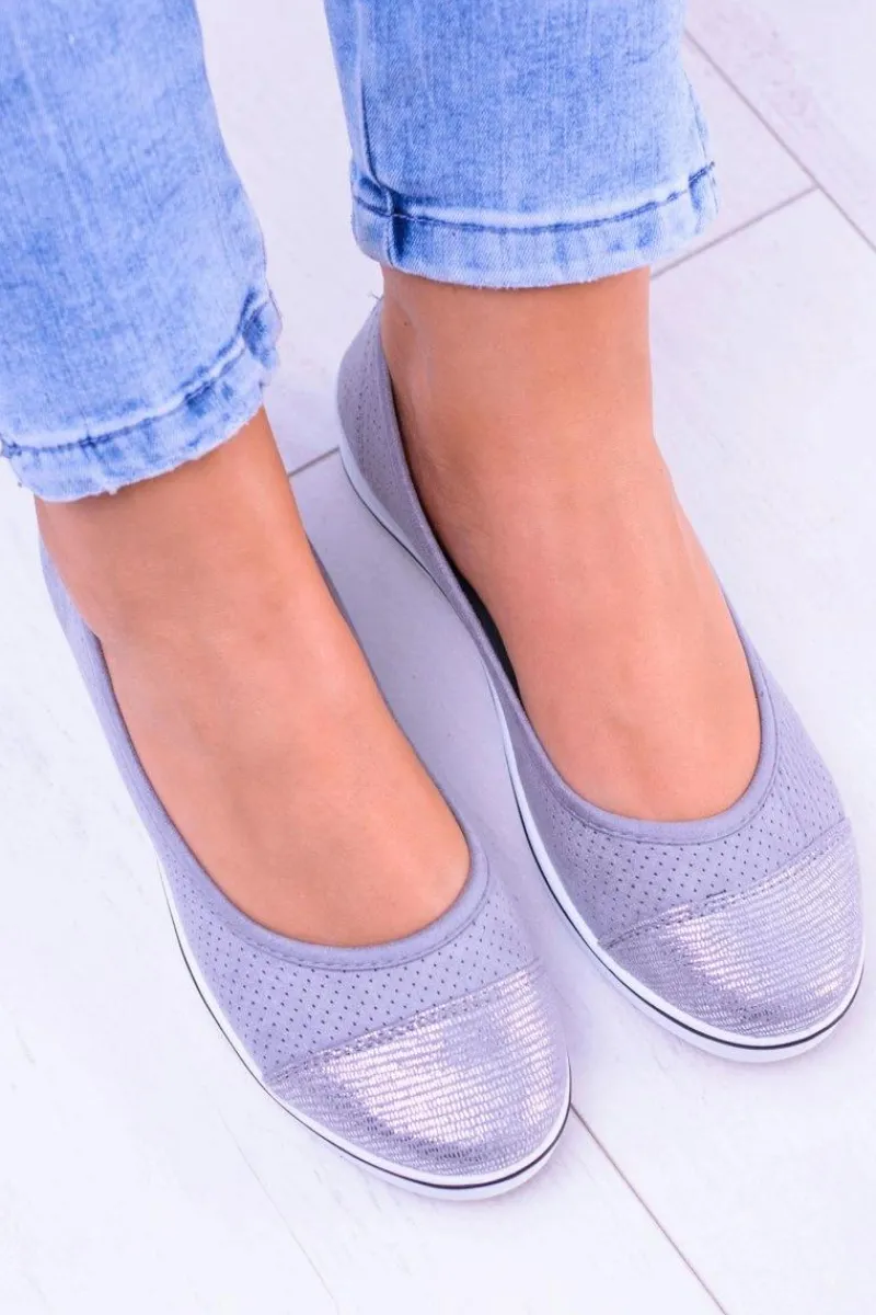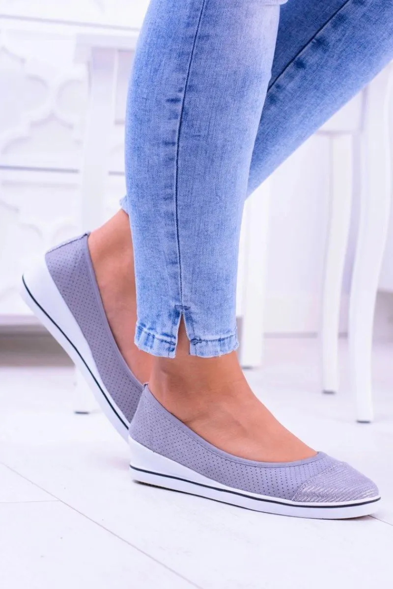 Baleriny Klasyczne>Boto Materiałowe Szare Baleriny Na Koturnie Elleni