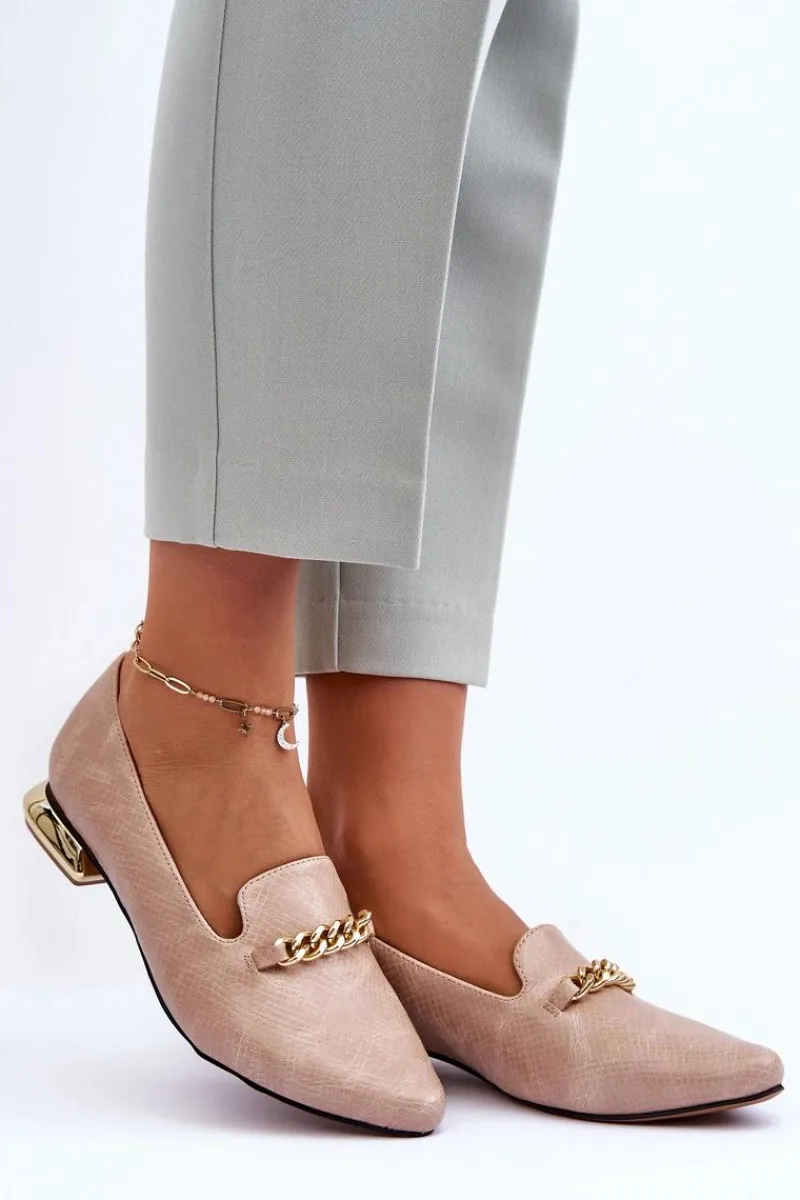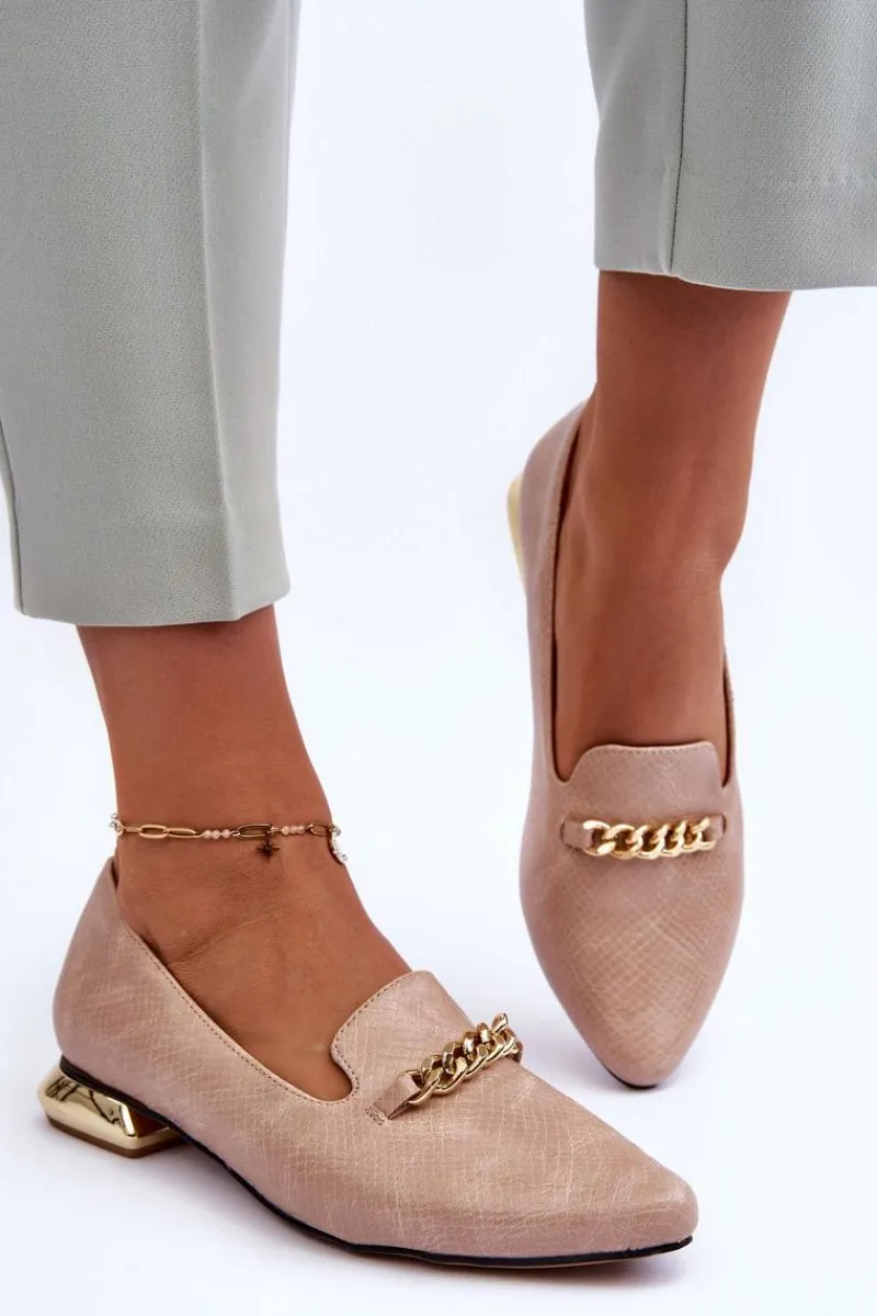 Eleganckie baleriny zostały wykonane z eko skóry. Buty te osadzono na płaskim obcasie. Profilowana wkładka wykonana ze skóry naturalnej zapewni komfortowe użytkowanie obuwia. Migdałowy nosek optycznie wysmukli nogi. Baleriny wykorzystasz do wielu stylizacji zarówno z sukienkami, spódniczkami jak i spodniami. Przy wyborze rozmiaru prosimy sugerować się tabelą rozmiarów.