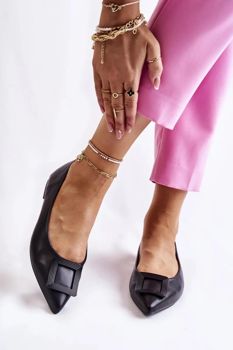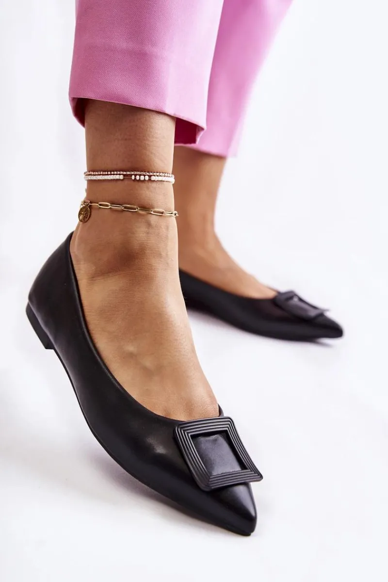 Baleriny Klasyczne>Boto Skórzane Baleriny Z Ozdobą W Szpic Czarne Simone