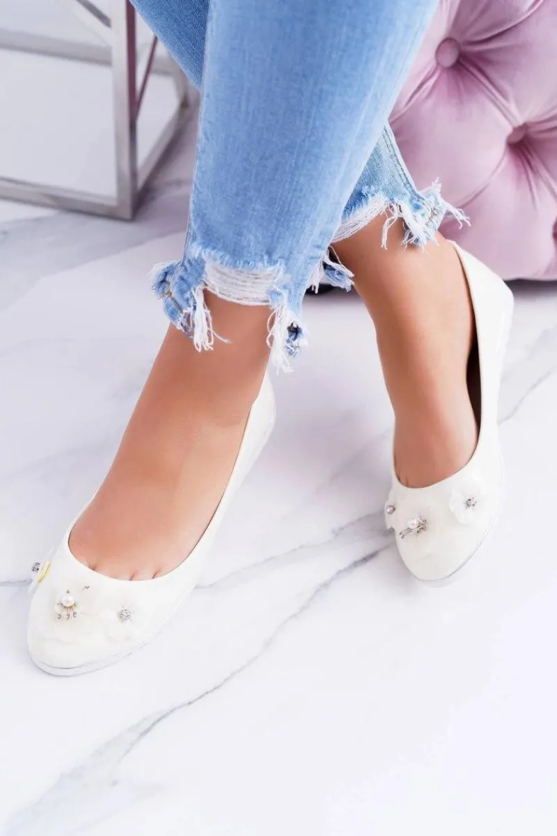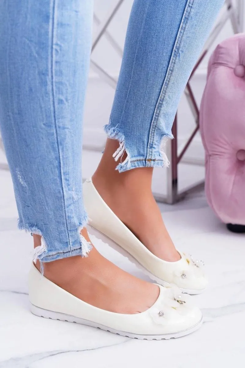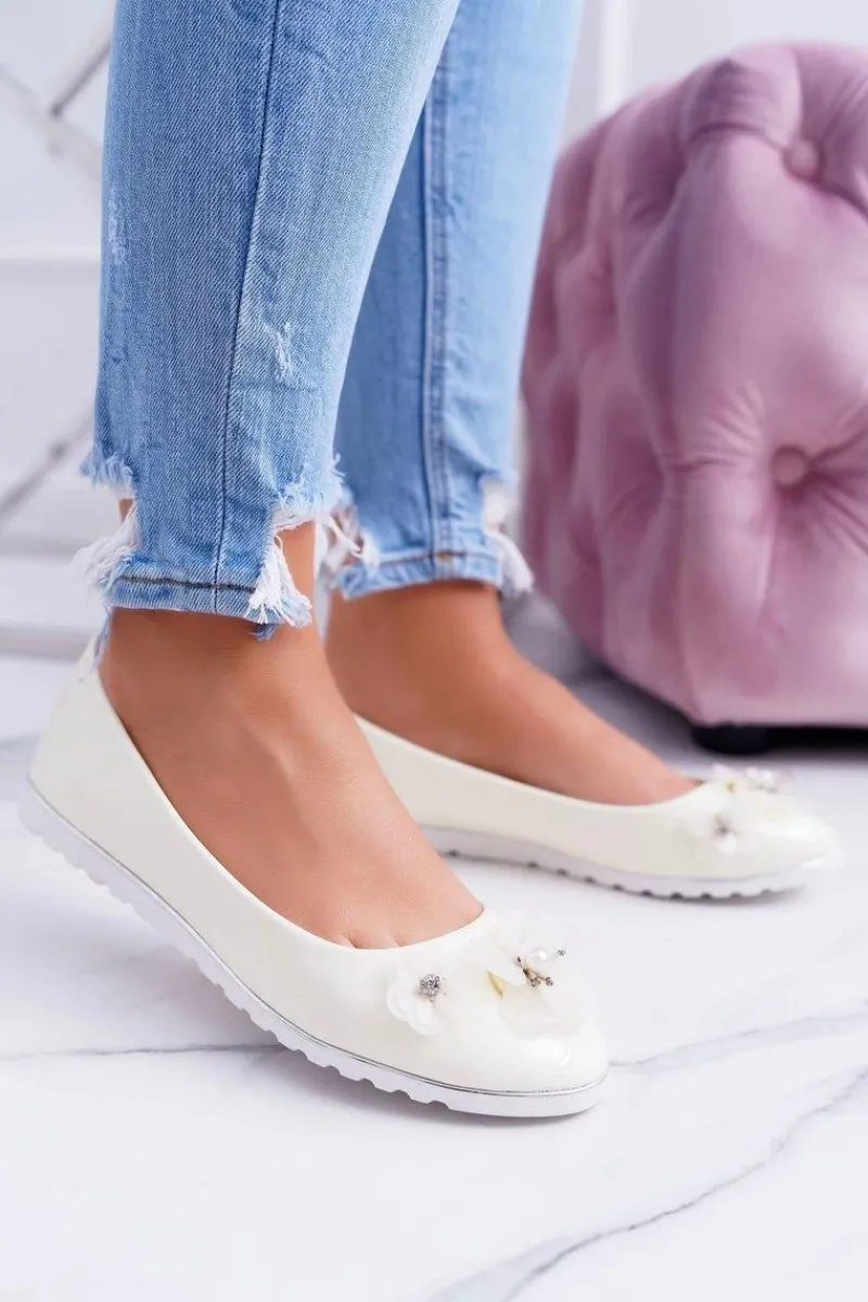Baleriny Klasyczne>Boto Vices | Lakierowane Pastelowe Damskie Balerinki Z Kwiatkiem Neli
