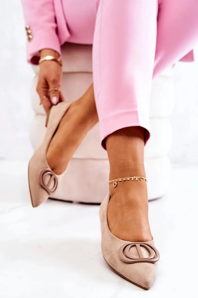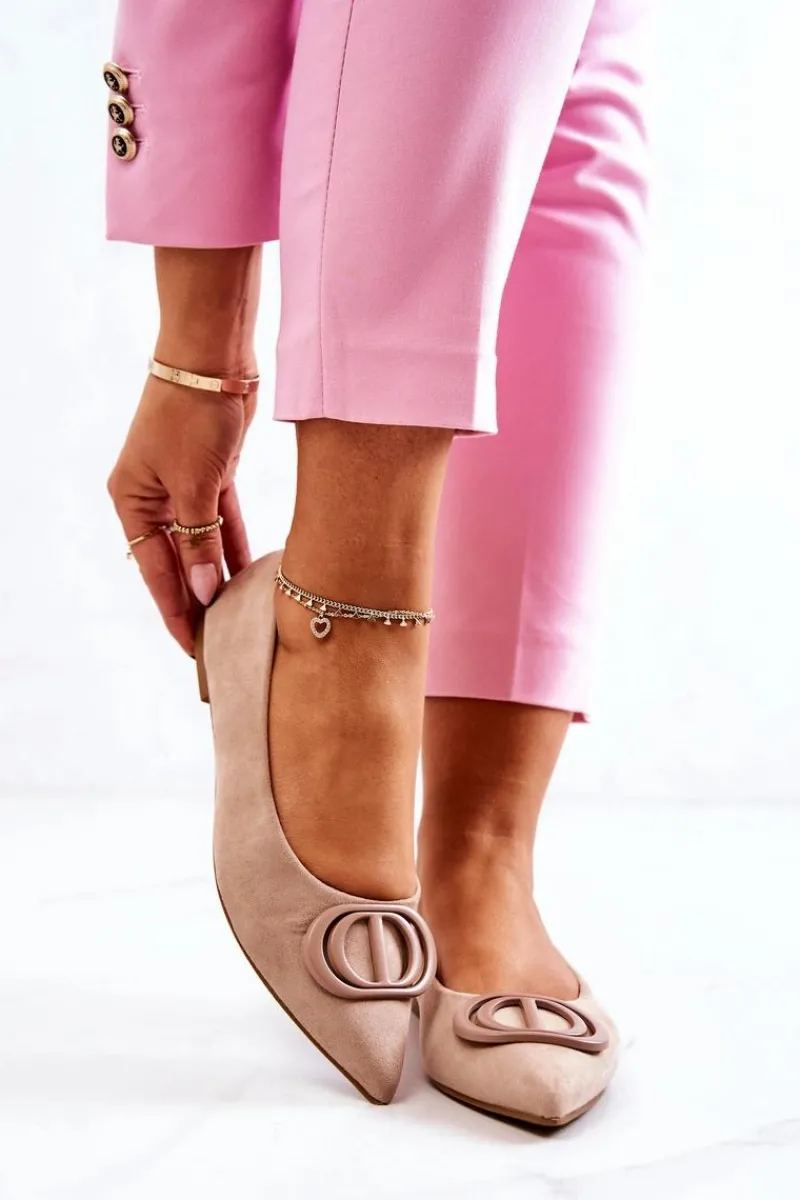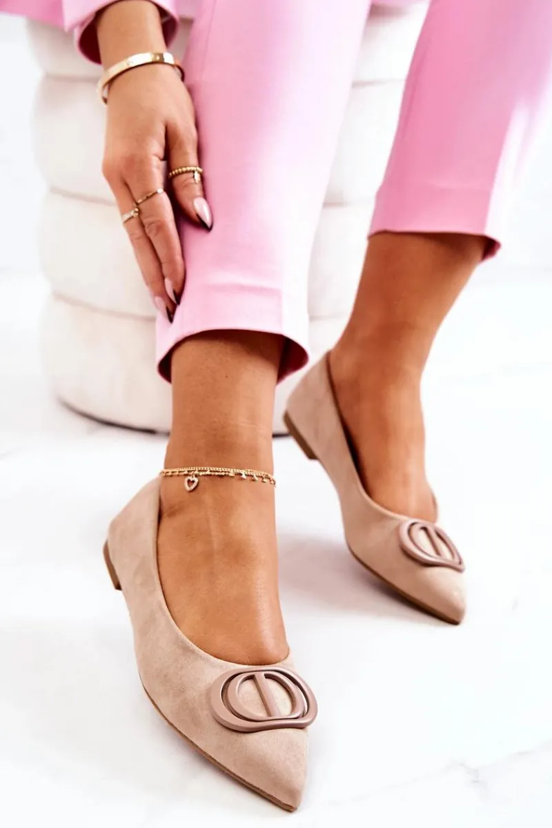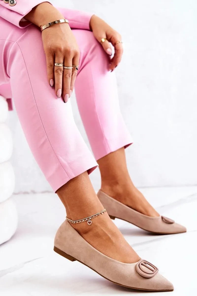 Eleganckie baleriny z ozdobnym elementem z tworzywa sztucznego. Buty wykonane są w całości z zamszowej eko skóry. Miękka wkładka zadba o Twój komfort. Nosek w szpic. Baleriny dopełnią wiele stylizacji i przydadzą się na wiele okazji. Koniecznie sprawdź całą naszą kolekcję balerinek. Przy wyborze rozmiaru prosimy sugerować się tabelą rozmiarów.