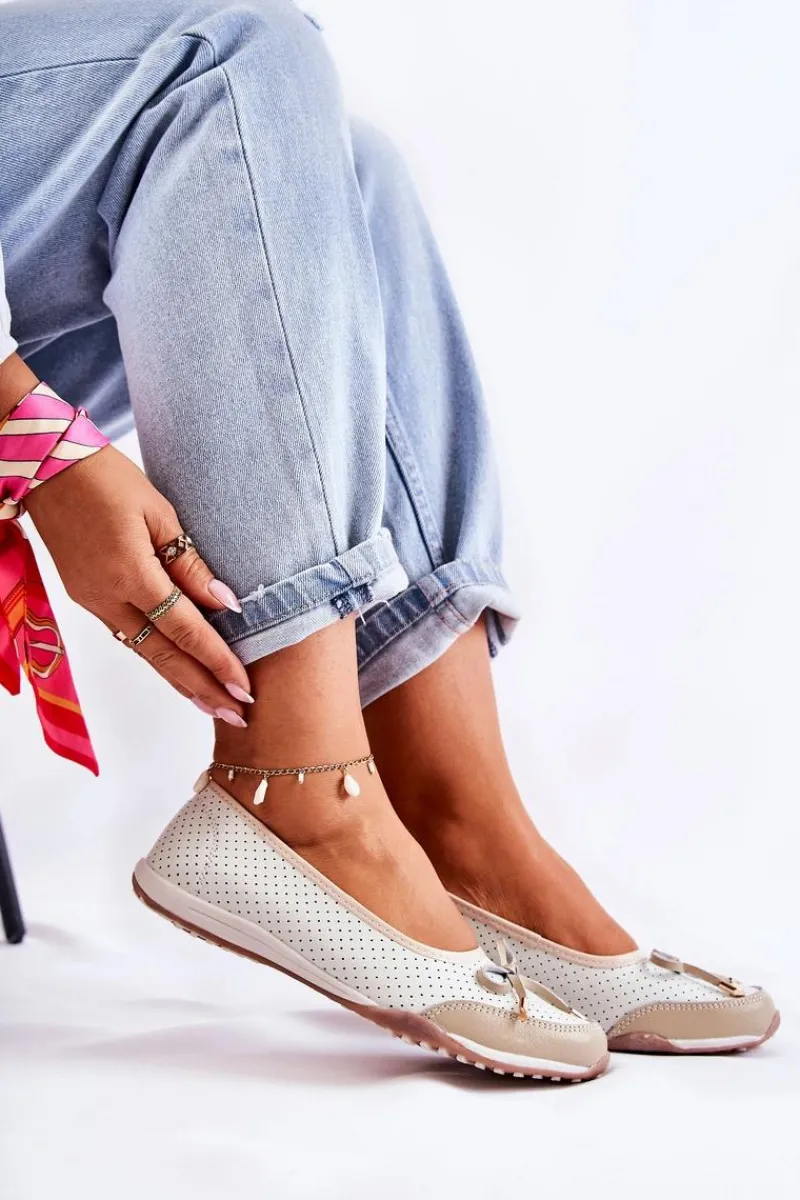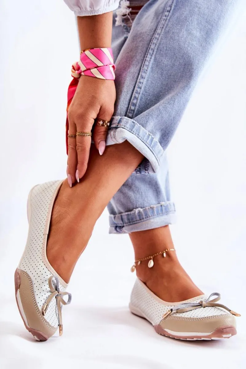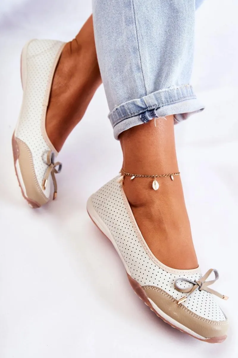 Baleriny Skórzane|Baleriny Klasyczne>Evento Ażurowe Skórzane Baleriny Biało-Beżowe Erdola