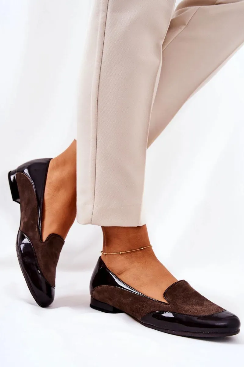 Baleriny to niewątpliwie jedne z najwygodniejszych butów, które pasują do wielu stylizacji. Prezentowany model wykonany został z naturalnej skóry, częściowo lakierowanej. Baleriny są bardzo eleganckie, a dodatkowo bardzo wygodne. Modny wzór podkreśla ich wyjątkowy styl. Posiadają z boku ozdobny element. Wkładka skórzana, perforowana.Podczas wyboru rozmiaru prosimy sugerować się tabelą rozmiarów.