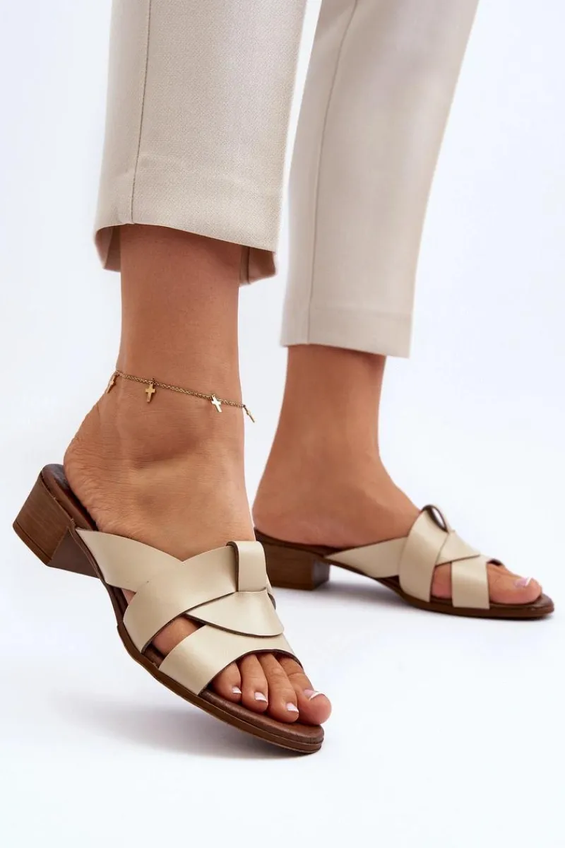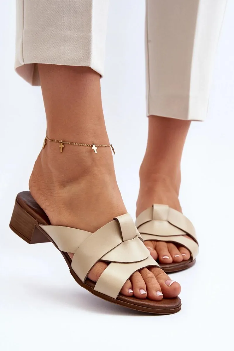 Klapki damskie wykonane ze skóry naturalnej. Osadzone na niskim obcasie. Skórzana wkładka zapewni wygodę podczas użytkowania. Świetnie sprawdzą się do wielu stylizacji. Spraw sobie radość kupując nową parę butów, które będą idealne na letnie dni! Przy wyborze rozmiaru prosimy sugerować się tabelą rozmiarów.
