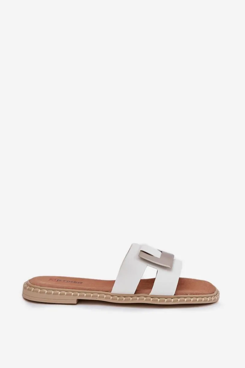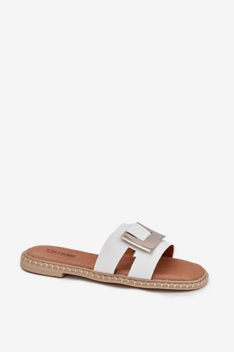 Damskie klapki od marki Artiker stanowią idealny wybór na upalne dni. Umieszczone na płaskim obcasie, gwarantują komfort przez cały dzień. Z przodu znajduje się ozdobny element. Miękka wkładka wykonana z naturalnej skóry gwarantuje wygodę i idealne dopasowanie do stopy. Elegancki fason sprawia, że doskonale pasują do różnych stylizacji, zarówno na co dzień, jak i na bardziej formalne wyjścia. Przy wyborze rozmiaru prosimy sugerować się tabelą rozmiarów.