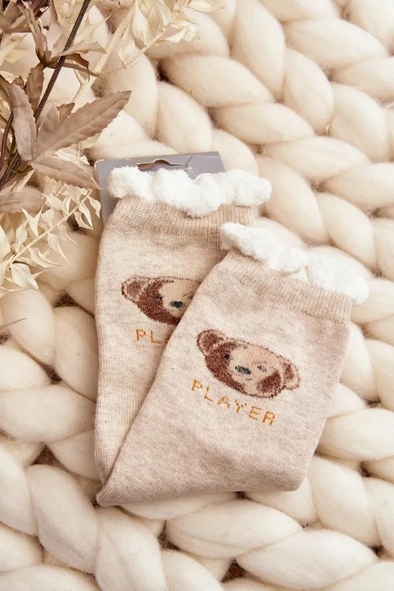 Ciepłe skarpety damskie idealne na mroźne dni. Model z naszywką w postaci misia. Lekki ściągacz sprawi, że będą idealnie dopasowane do tęgości nogi. Koniecznie powinnaś je mieć!