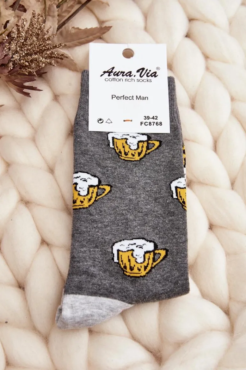 Best Aura.via Męskie Skarpetki We Wzory Piwo Szare Szary