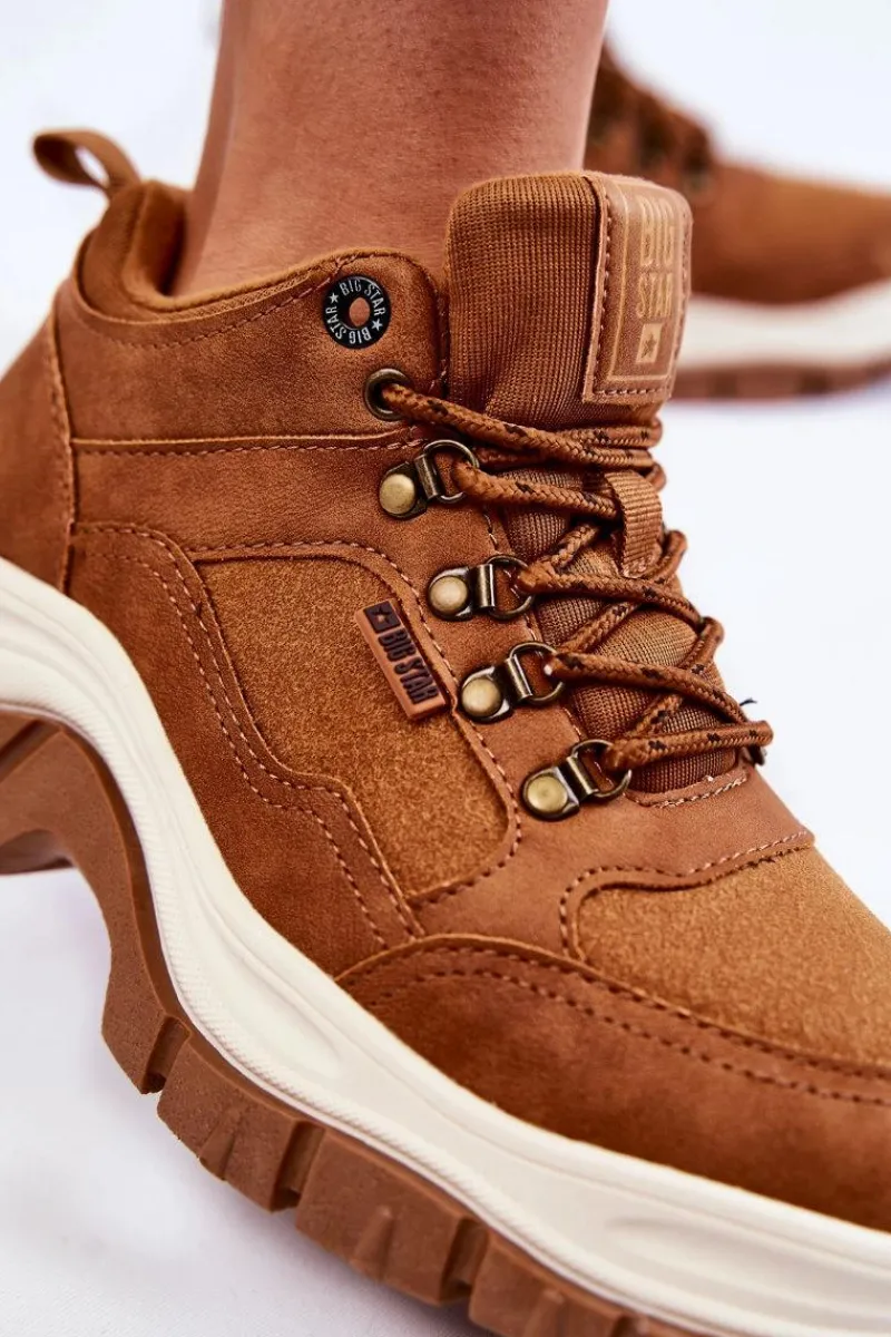 Damskie buty trekkingowe od polskiej marki Big Star z niską cholewką. Wykonane z wysokiej jakości materiałów ekologicznych. Model ten posiada solidne sznurowanie. Wkładka MEMORY FOAM SYSTEM zapamiętuje kształt stopy, zapewnia doskonałe dopasowanie oraz absorbuje wstrząsy. Dodatkowo jest odporna na odkształcenia oraz pozwala na odparowywanie wilgoci i regulacje temperatury. Usztywniany zapiętek zapewni stabilizację stopy. Ocieplone w środku kocem obuwniczym. Przy wyborze rozmiaru prosimy sugerować się tabelą rozmiarów.