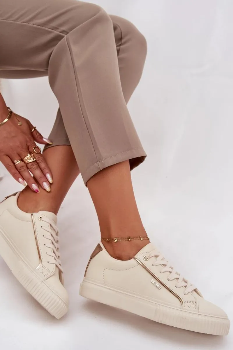 Sneakersy damskie Big Star z eko skóry to połączenie stylu i komfortu. Osadzone na platformie, zapewniają wygodę i stabilność, a wkładka z pianki, pokryta materiałem, gwarantuje dodatkowy komfort podczas chodzenia. Modny fason sprawia, że doskonale pasują do wielu stylizacji, od casualowych po bardziej eleganckie. Przy wyborze rozmiaru prosimy sugerować się tabelą rozmiarów.