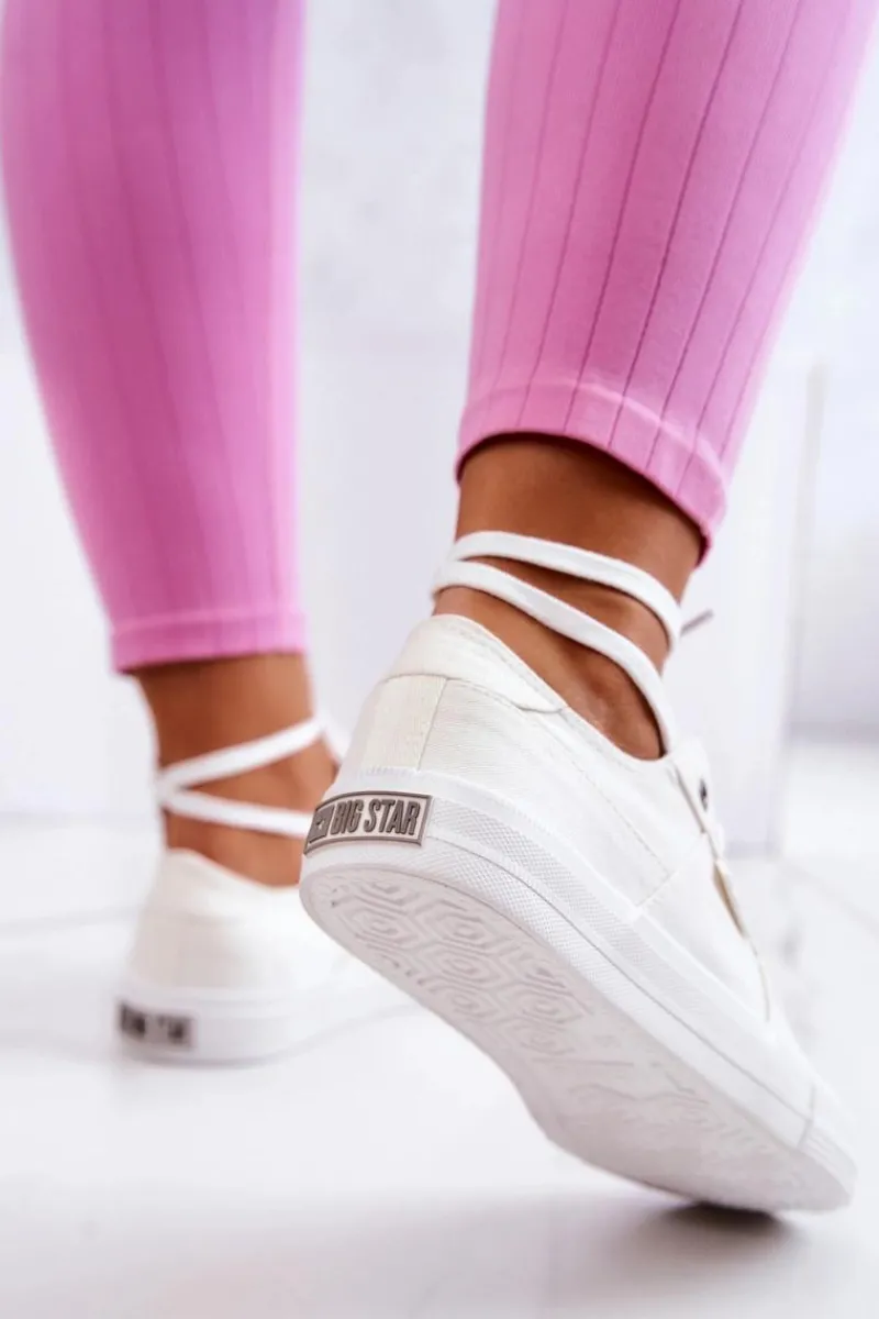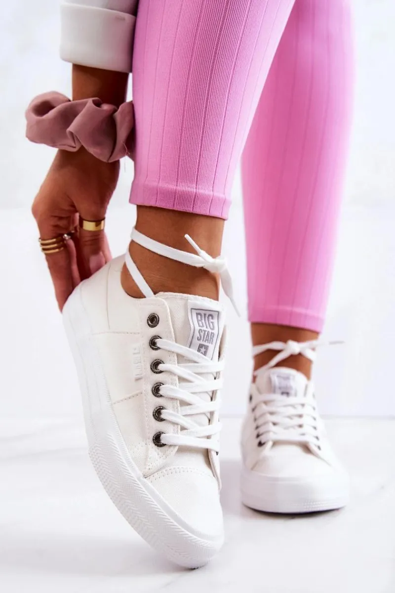Tenisówki polskiej marki BIG STAR wykonane zostały z tkaniny. Posiadają miękką, materiałową wkładkę oraz antypoślizgową podeszwę. Klasyczny, wiązany model. Wygodne, a zarazem modne. Takie właśnie są te tenisówki! Masywna platforma świetnie izoluje od podłoża. Powinnaś mieć je w swojej szafie! Przy wyborze rozmiaru prosimy sugerować się tabelą rozmiarów.