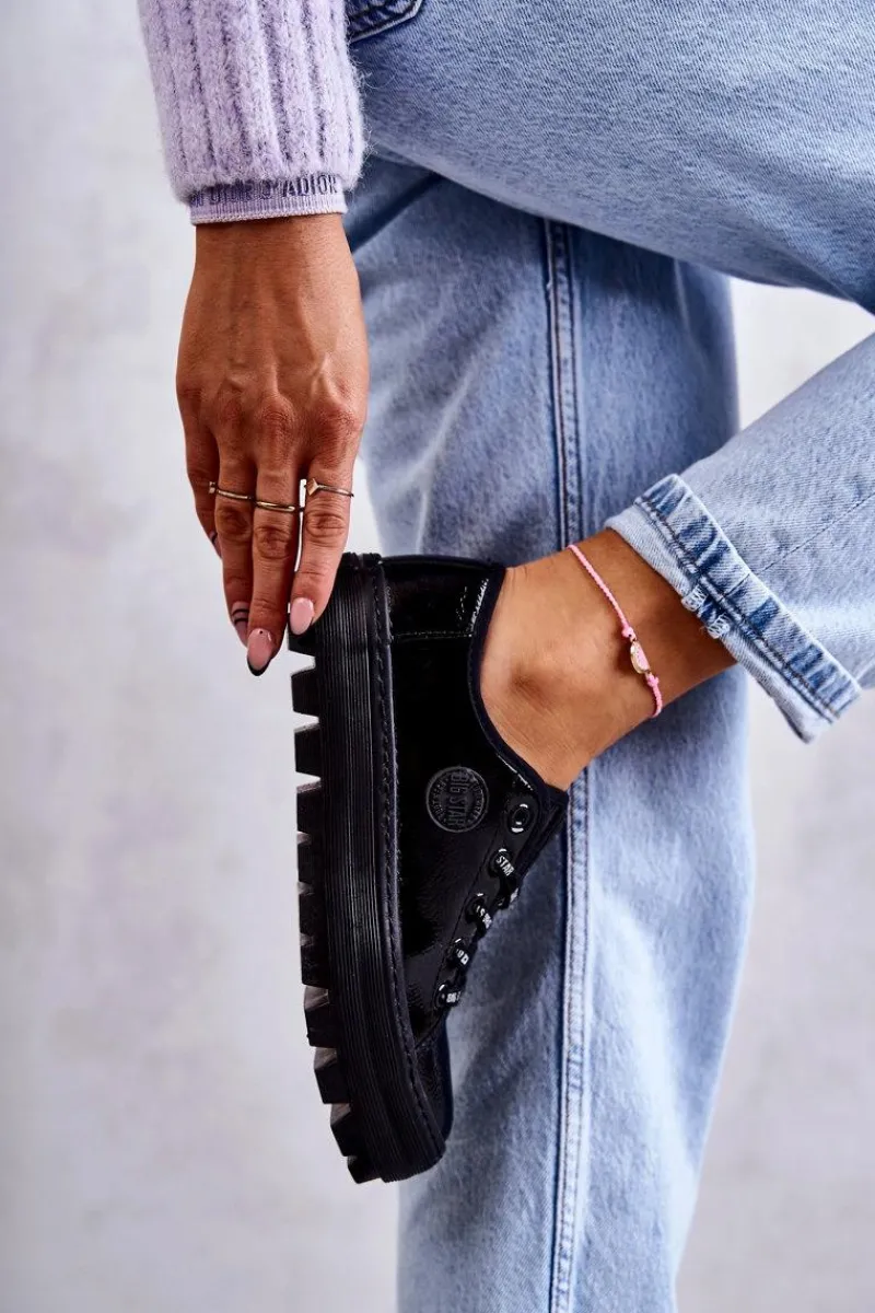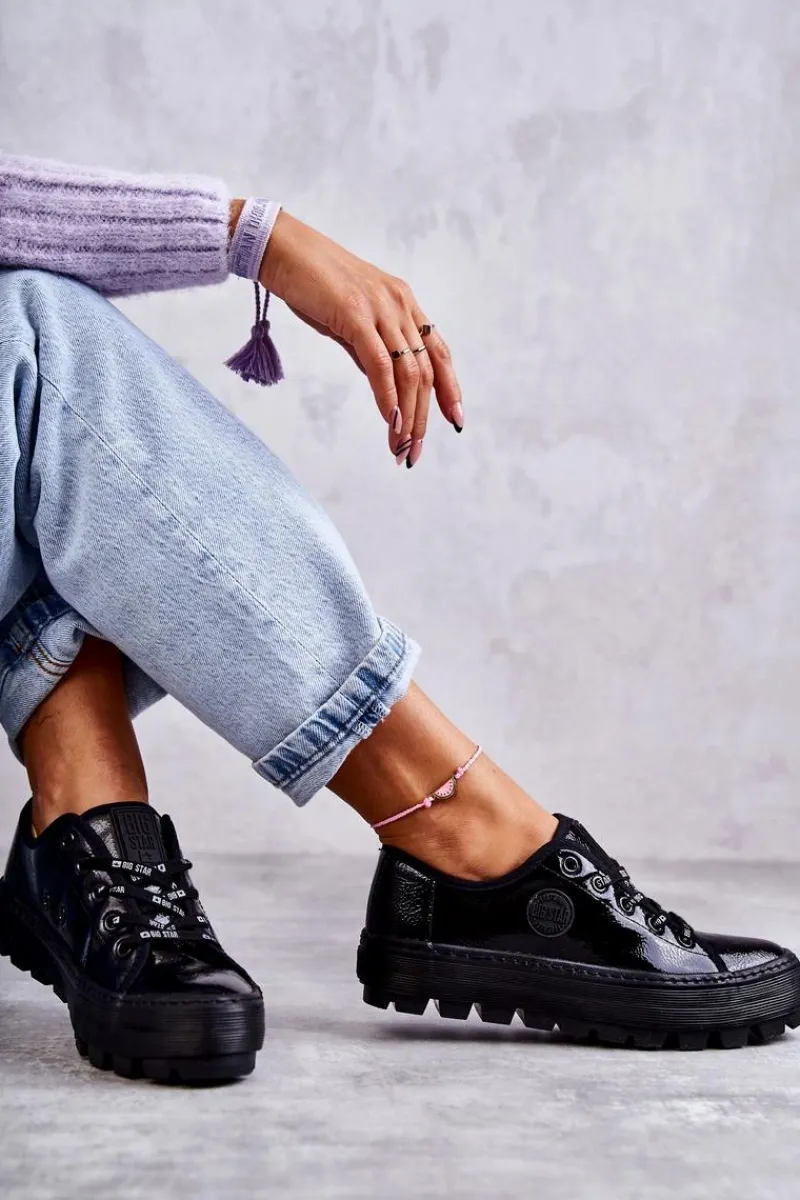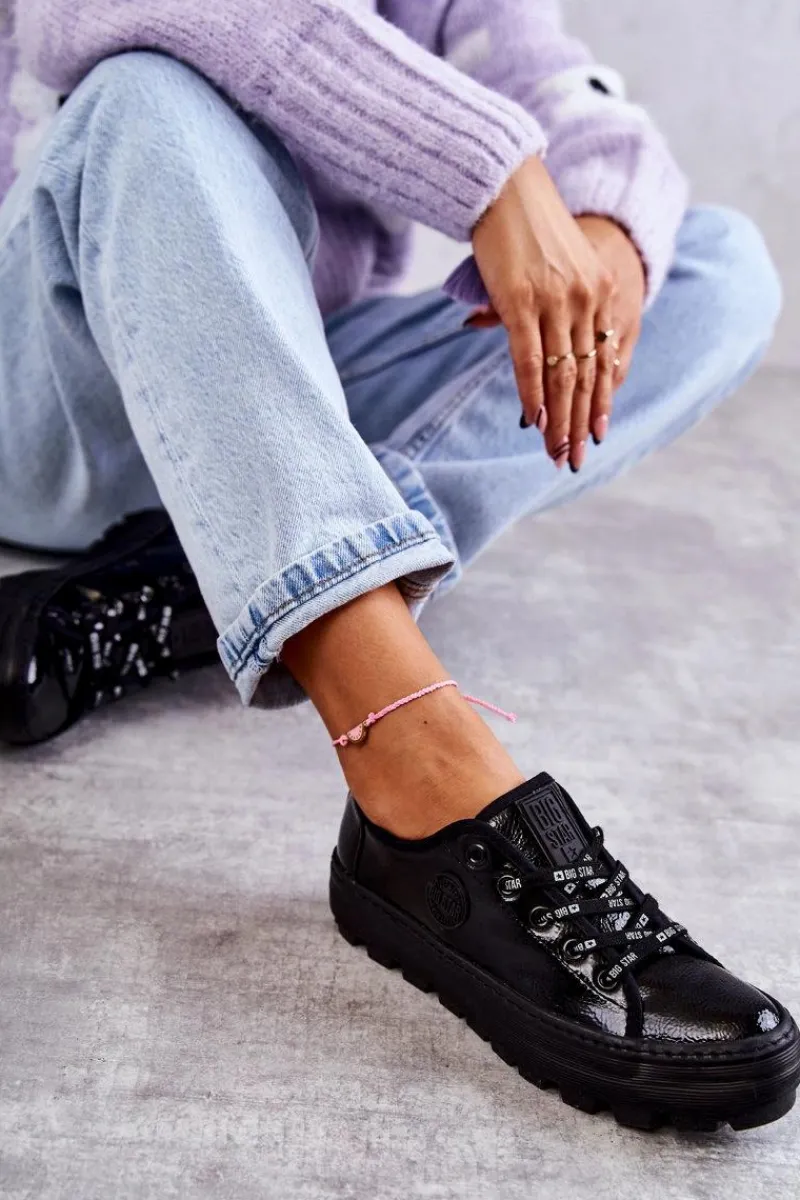 Rewelacyjne trampki od marki Big Star! Nowoczesny design oraz podeszwa z wysokim bieżnikiem wyróżnia ten model spośród innych! Z boku cholewki znajduje się gumowy emblemat. Trampki te dodatkowo posiadają logowane sznurowadła. Podeszwa antypoślizgowa zapewni stabilność. Model ten posiada także usztywniany zapiętek. Koniecznie powinnaś je mieć w swojej garderobie! Przy wyborze rozmiaru prosimy sugerować się tabelą rozmiarów.