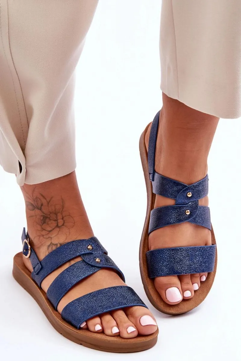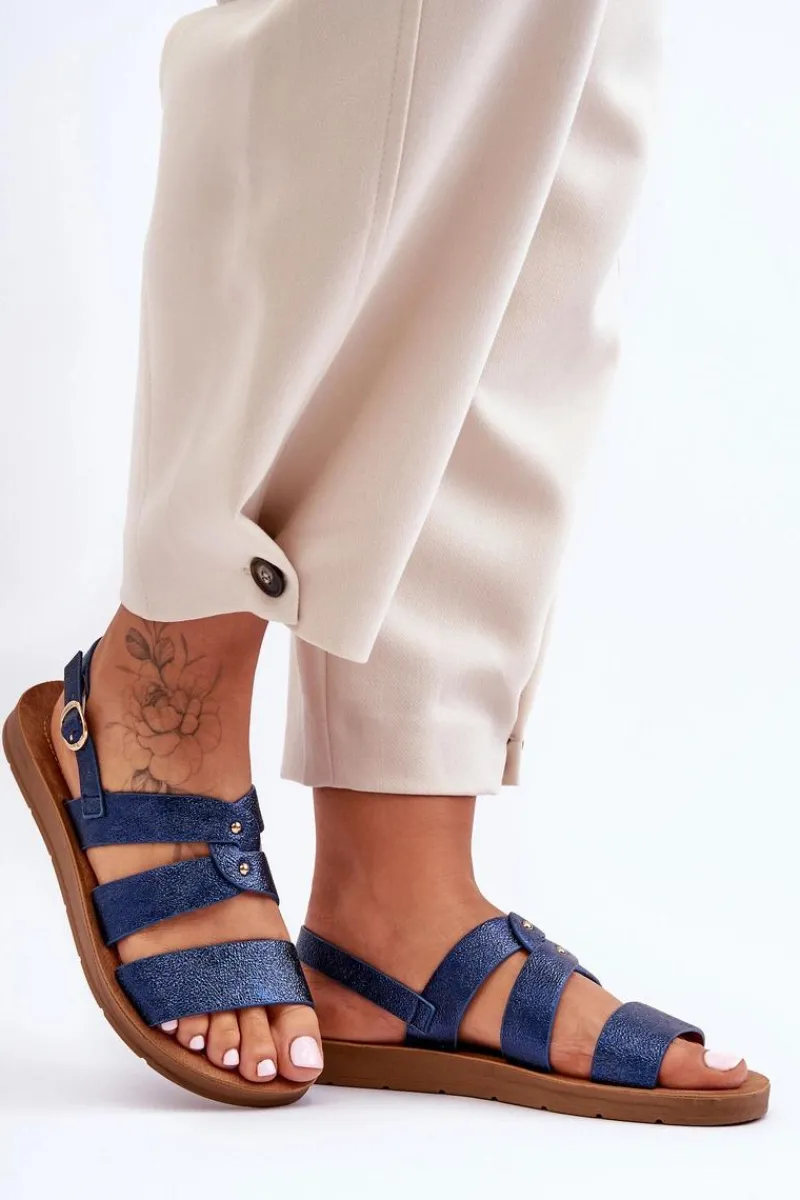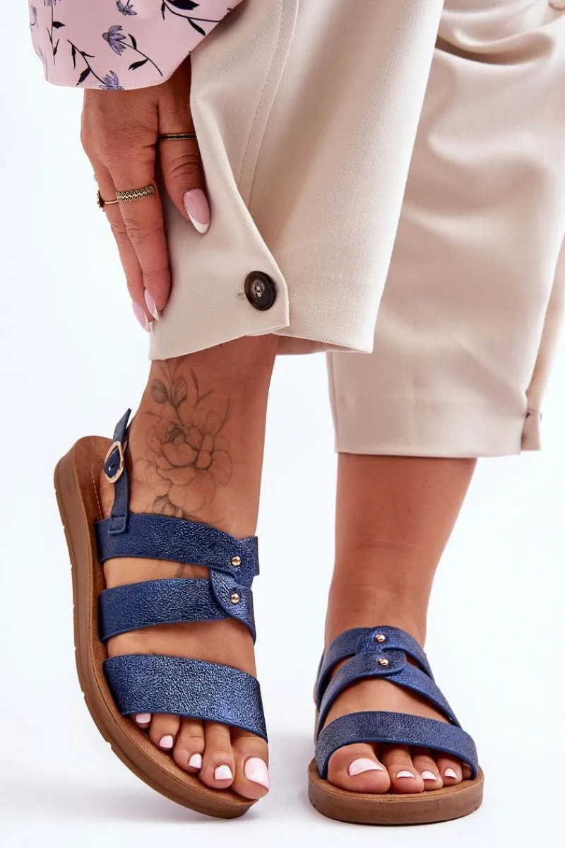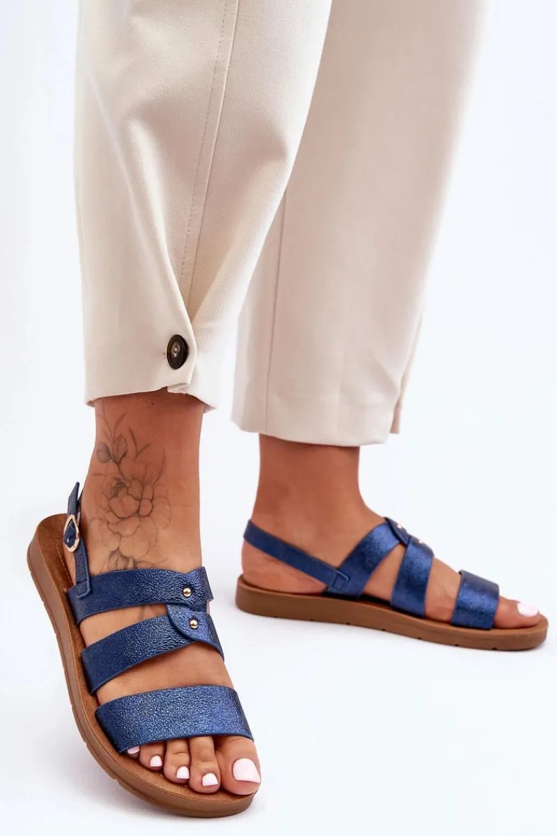 Best Błyszczące Sandały Damskie Niebieskie Catalia Damskie Sandały Płaskie
