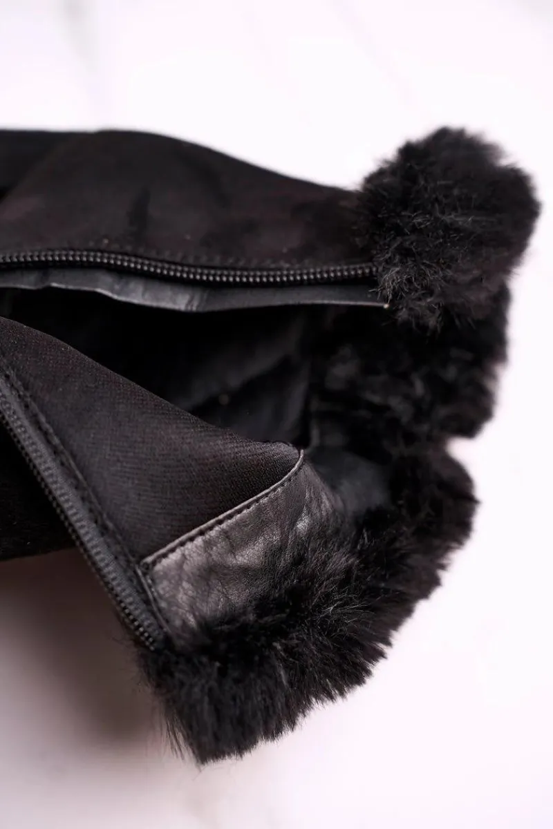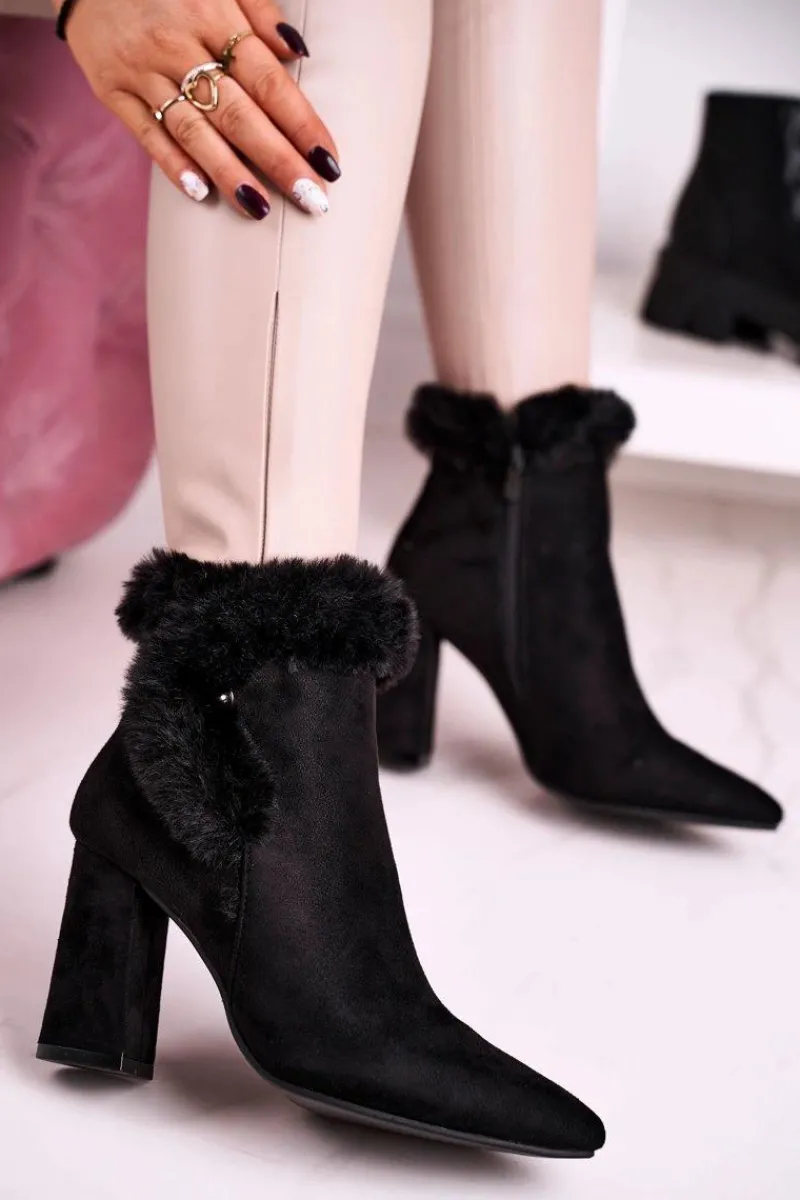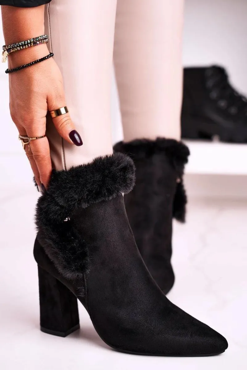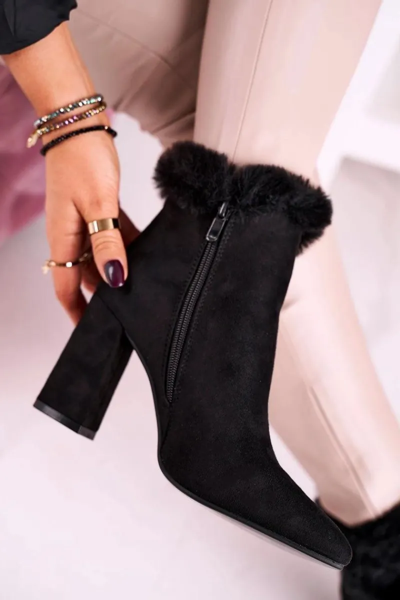 Best Botki Na Słupku Z Futerkiem Zamszowe Czarne Sophie Damskie Botki Na Słupku|Czarne Botki
