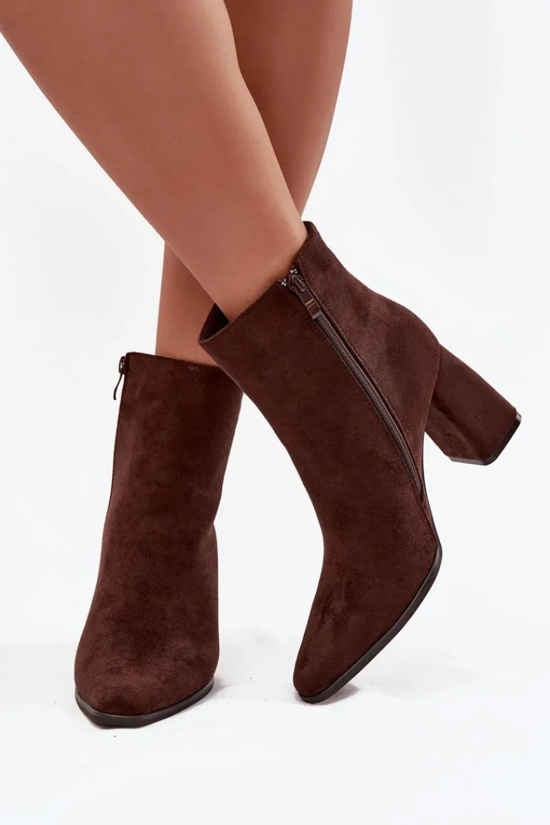 Botki damskie wykonane z eko zamszu to elegancka i uniwersalna propozycja na sezon jesienno-zimowy. Model osadzony został na stabilnym obcasie typu słupek, który dodaje kilku centymetrów wzrostu, jednocześnie zapewniając wygodę podczas chodzenia. Migdałowe noski nadają subtelności i kobiecego charakteru, a praktyczne zapięcie na zamek ułatwia zakładanie i zdejmowanie. To klasyczne botki, które doskonale dopełnią różne stylizacje – świetnie prezentują się zarówno w zestawieniu ze spódnicami i sukienkami, jak i z dopasowanymi spodniami. Przy wyborze rozmiaru prosimy sugerować się tabelą rozmiarów.