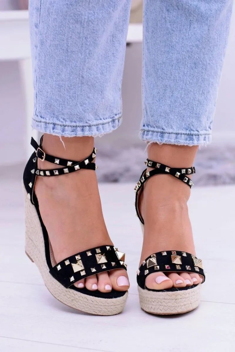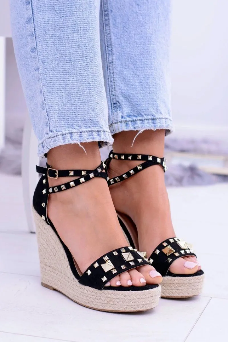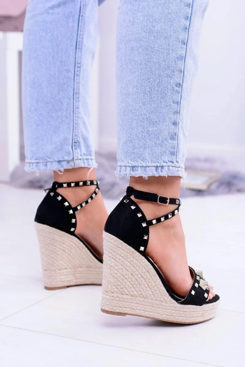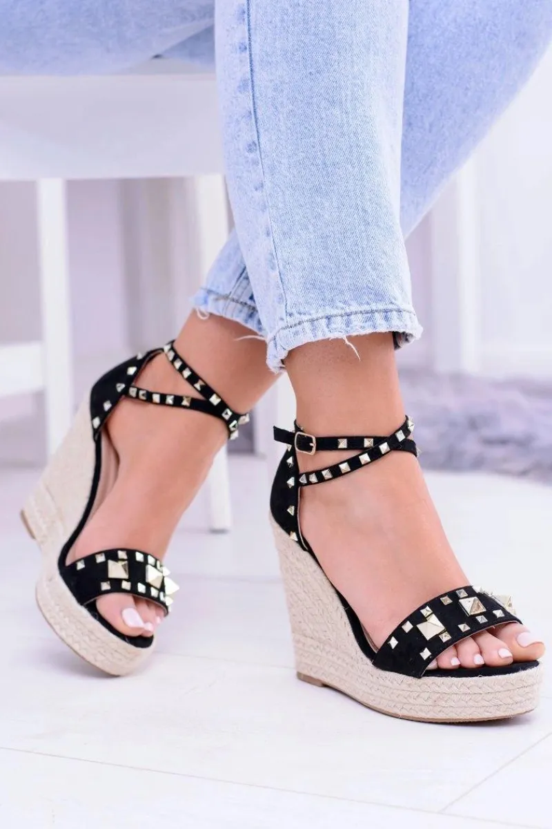 Best Boto Czarne Sandały Na Koturnie Espadryl Ćwieki Dżety Narumi