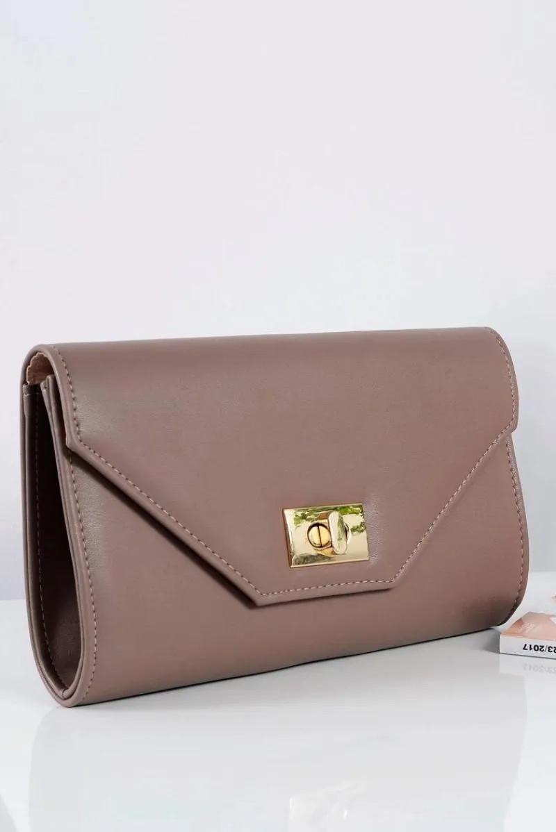 Niezwykła damska torebka-kopertówka, którą można nosić na dwa sposoby, w ręku oraz na ramieniu dzięki doczepianemu złotemu łańcuszkowi, które nadaje jej jednocześnie eleganckiego wyglądu. Nie można oderwać od niej oczu. Wygodne zapinanie dzięki zatrzaskowi, również w złotym kolorze. Wewnątrz znajduje się jedna duża komora oraz jedna mała kieszonka na drobiazgi. Wykonana z delikatnej w dotyku skóry ekologicznej.
