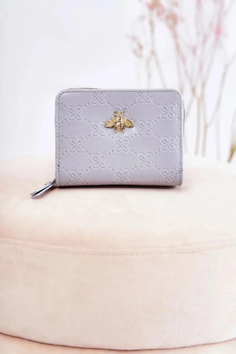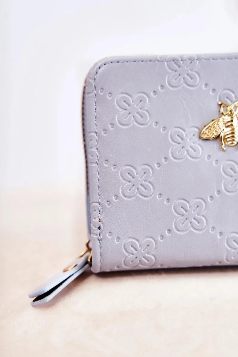 Mały, elegancki portfel został wykonany z eko skóry z tłoczeniem na całości. Zapinany na magnes oraz suwak. W środku posiada kilka kieszeni na karty czy wizytówki, miejsce na banknoty, a także miejsce na fotografię. Zamykana na suwak kieszonka pomieści bilony. Na przodzie umieszczono modny emblemat. Portfel dodatkowo posiada dopinany pasek. Ten niezbędny dodatek każdej kobiety sprawdzi się także idealnie jako prezent!