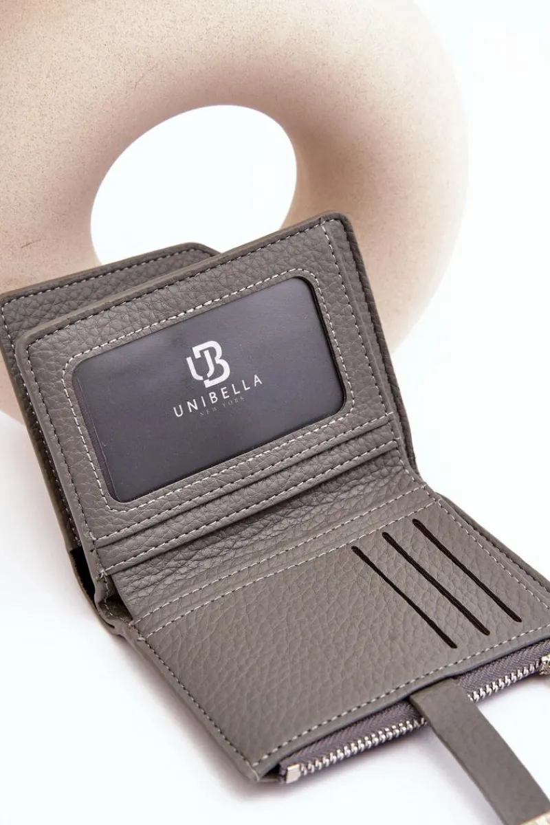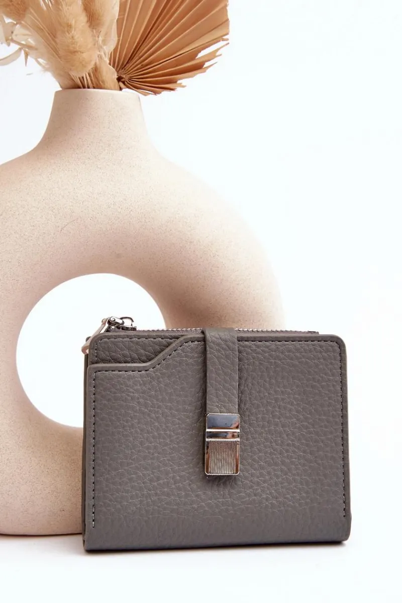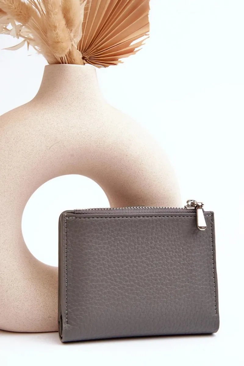 Portfel damski wykonany z eko skóry. Zapinany na klips magnetyczny. W środku miejsce na banknoty, karty i fotografię. Dodatkowa kieszeń zapinana jest suwakiem. Model ten jest niewielki, ale z pewnością pomieści najpotrzebniejsze rzeczy.