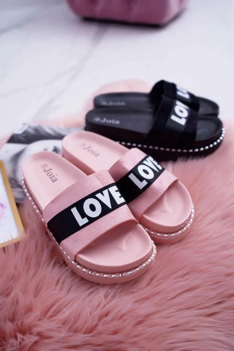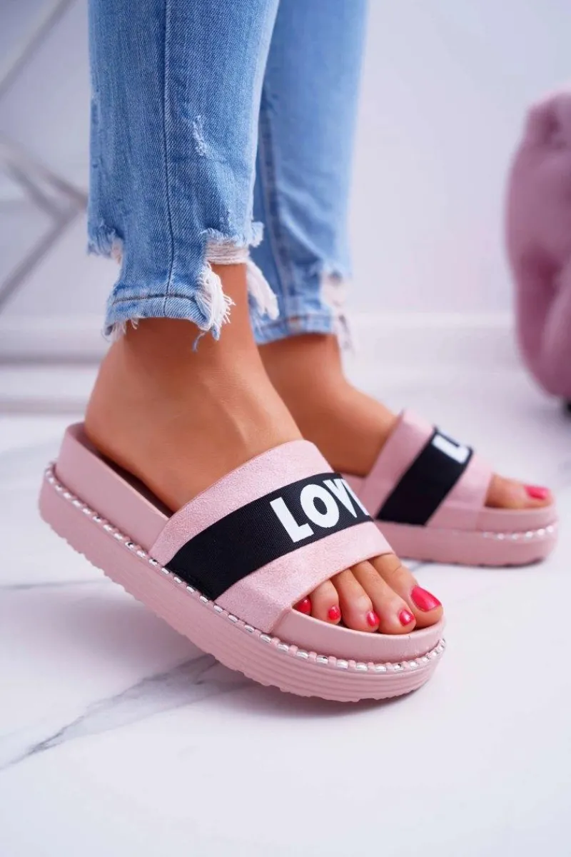 Best Boto Damskie Klapki Na Platformie Z Dżetami Love Różowe MoreLove