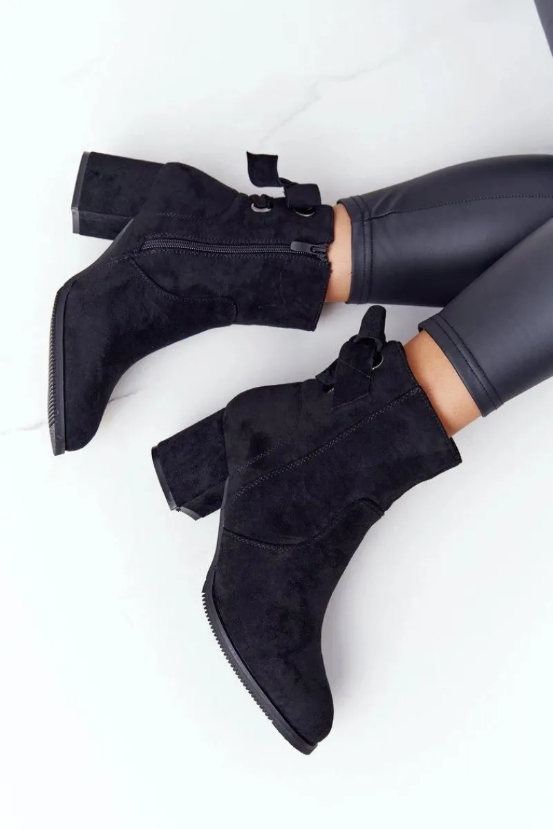 Best Boto Damskie Ocieplane Botki Na Słupku Czarne Kayla