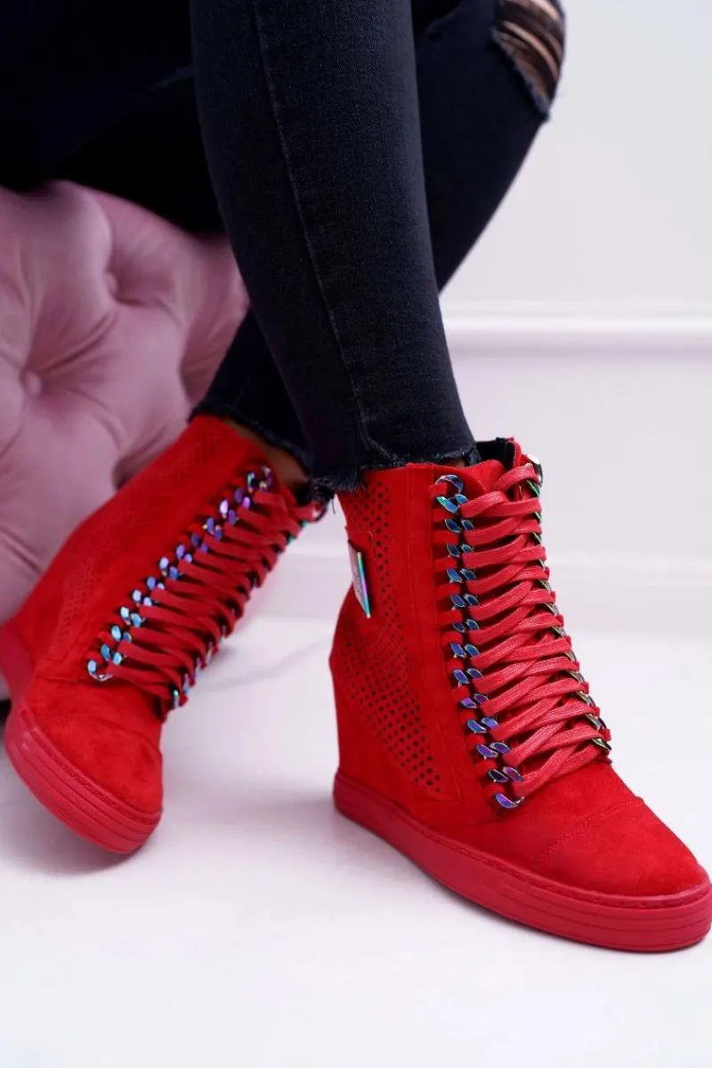 Best Boto Damskie Sneakersy Lu Boo Ażurowe Zamszowe Czerwone Clamma