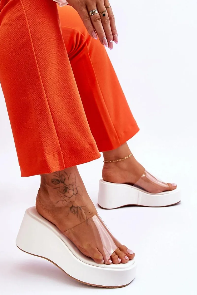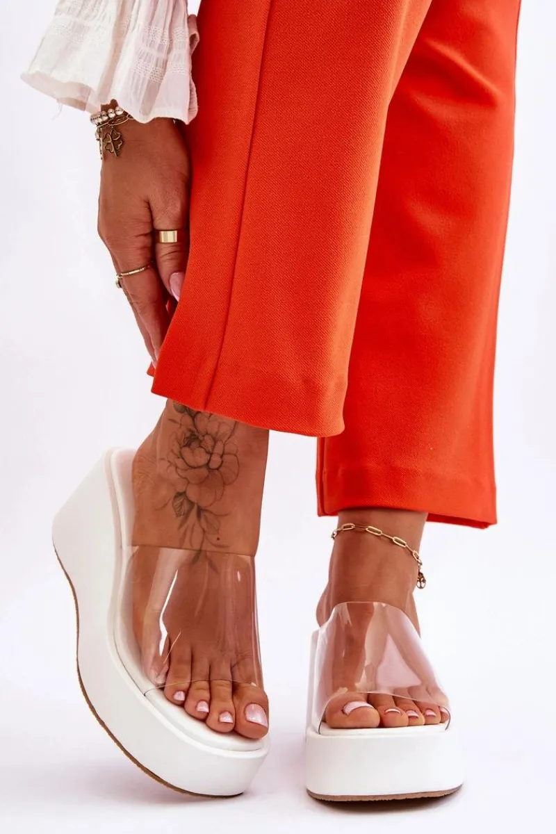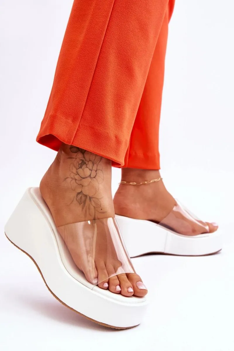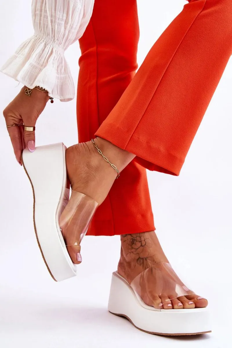 Best Boto Damskie Transparentne Klapki Na Koturnie Białe Eliane