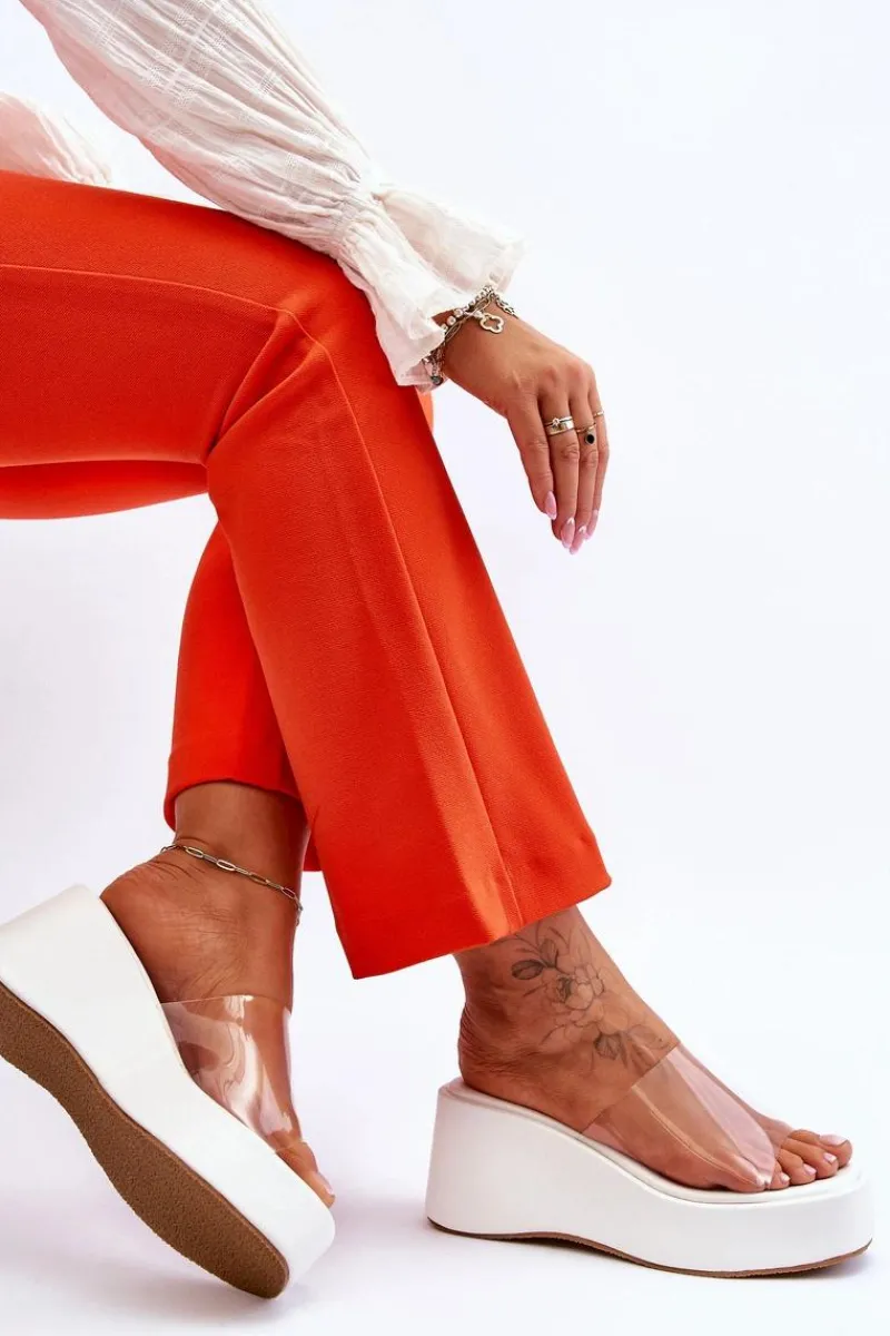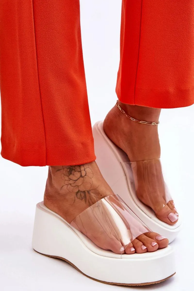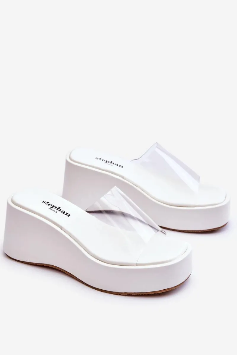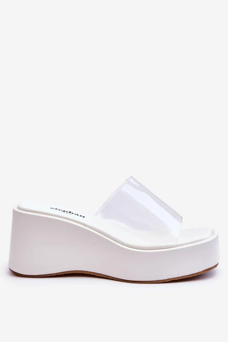 Best Boto Damskie Transparentne Klapki Na Koturnie Białe Eliane