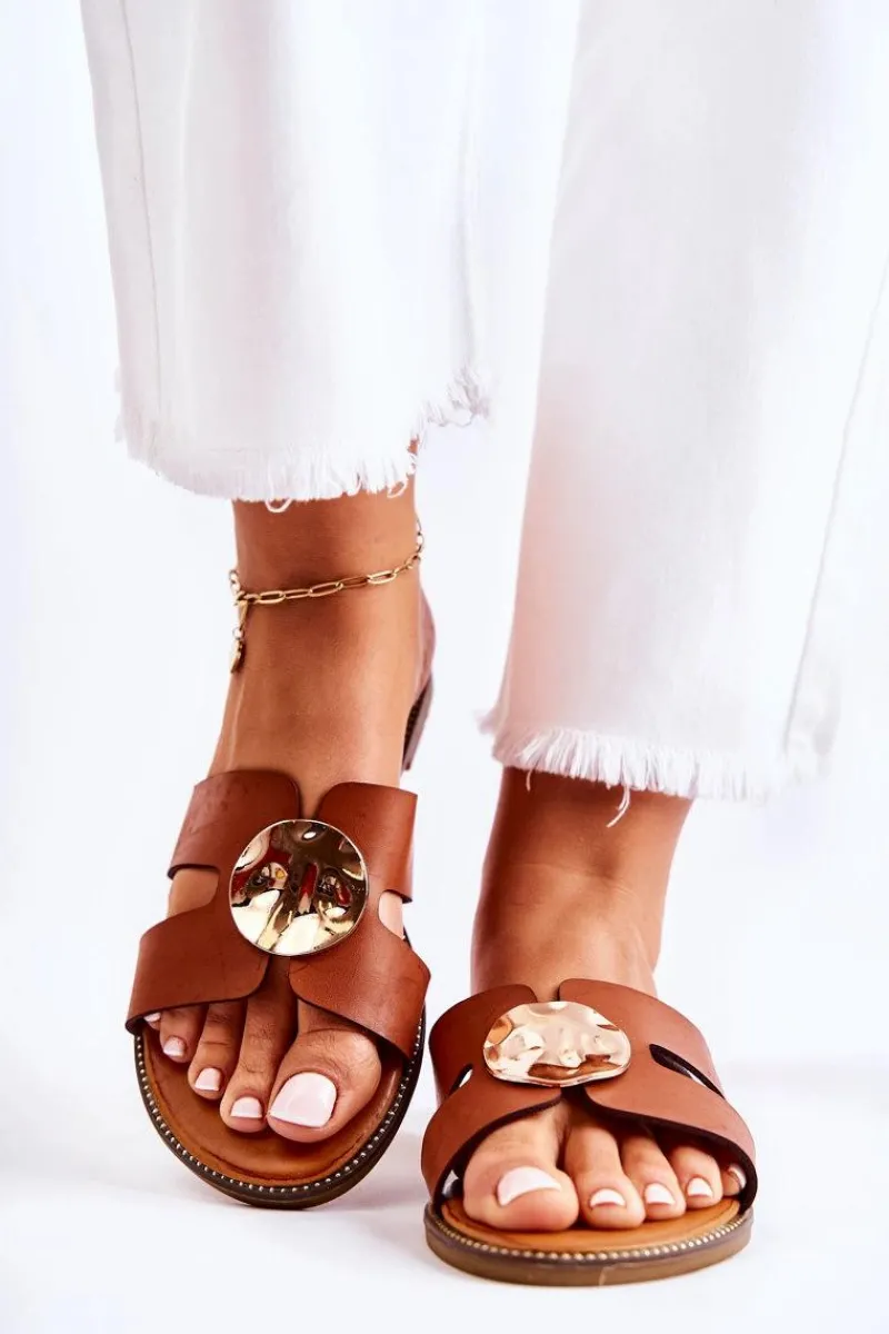 Damskie klapki na płaskim obcasie to fason idealny na co dzień! Model wsuwany, z odkrytym, okrągłym noskiem. Stopę podtrzymują szerokie paski z wycięciami połączone za pomocą ozdoby na środku. Wykonane z tworzywa sztucznego, natomiast miękka wkładka wykonana z eko skóry. Osadzone na płaskim obcasie, z antypoślizgową podeszwą. Uwielbiasz być na bieżąco z modowymi trendami? Właśnie ten model pozwoli Ci na stworzenie wspaniałych stylizacji! Przy wyborze rozmiaru prosimy sugerować się tabelą rozmiarów.