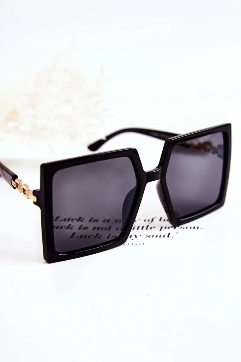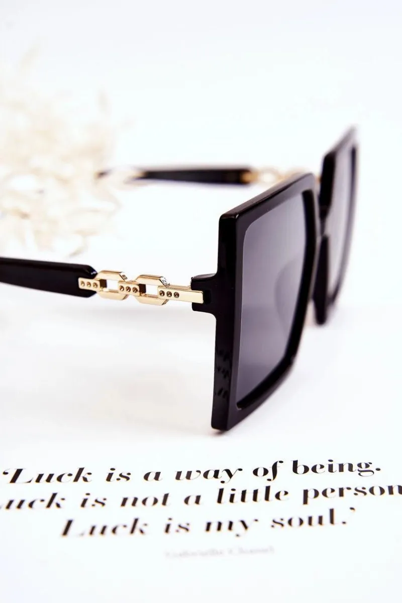 Modne okulary przeciwsłoneczne świetnie sprawdzą się w wielu sytuacjach! Nie tylko podczas letniego sezonu, ale także zimowego, kiedy promienie słoneczne odbijają się od śniegu. Model kwadratowy, z cienkimi oprawkami soczewek. Mostek z tworzywa sztucznego. Zausznik wykonany z tworzywa sztucznego z ozdobnym, złotym dodatkiem. Informacja od producenta: okulary absorbują szkodliwe promienie UV, kategoria 3.