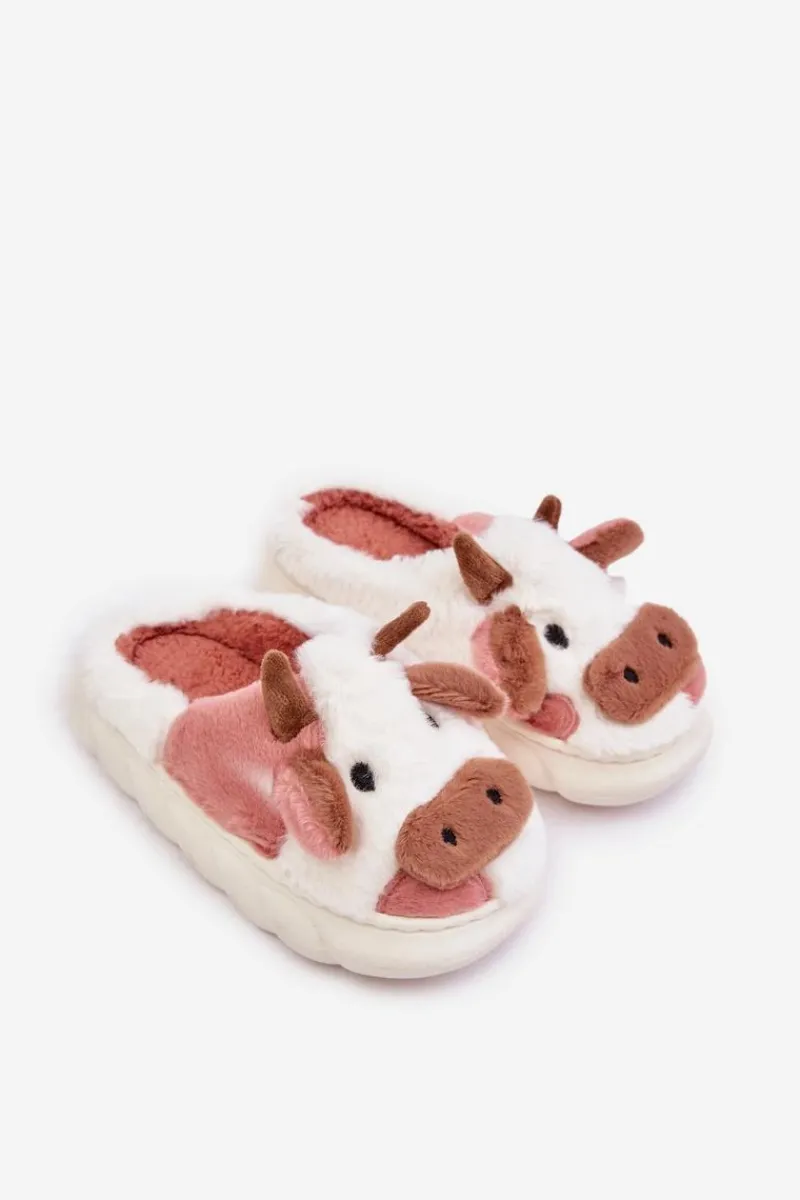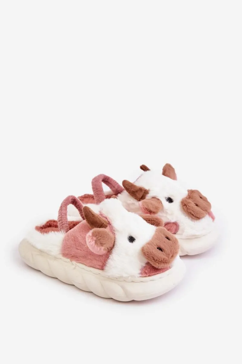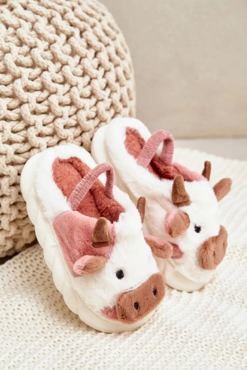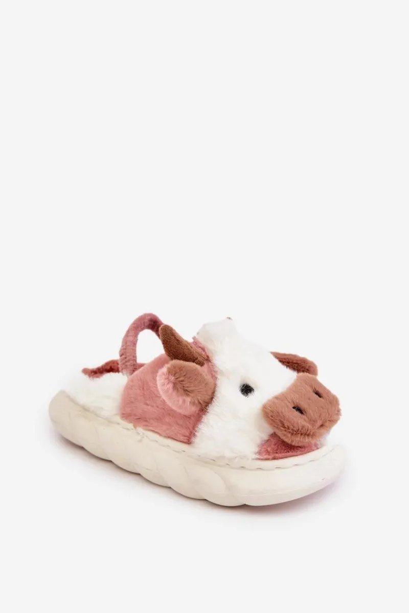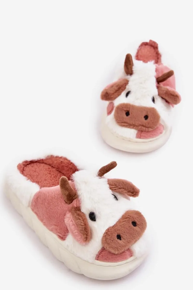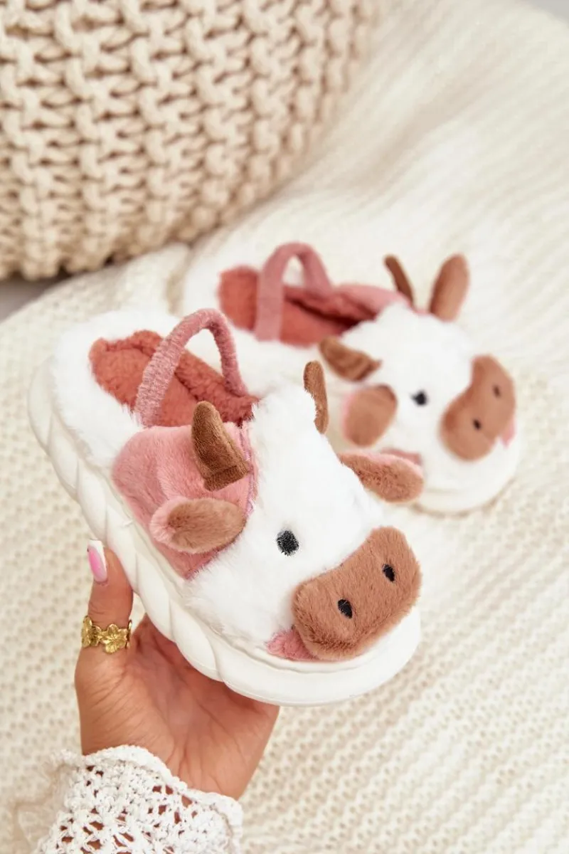 Best Boto Dziecięce Futrzane Kapcie Z Motywem Krowy Różowe Tamorrin
