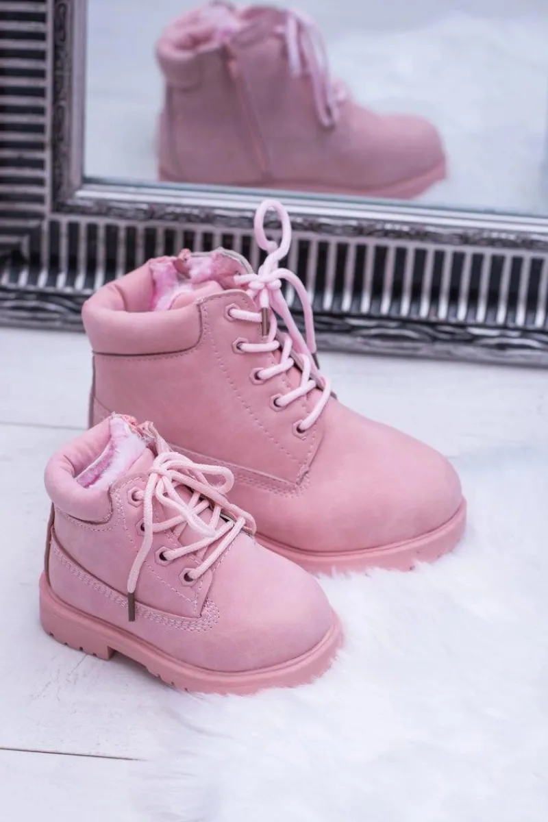 Best Boto Dziecięce Ocieplane Trapery Botki Pudrowy Róż Dexter
