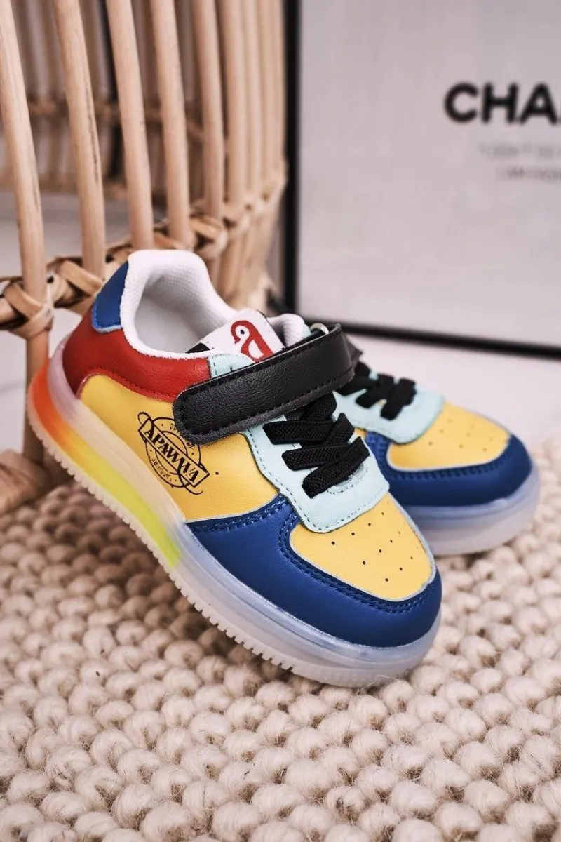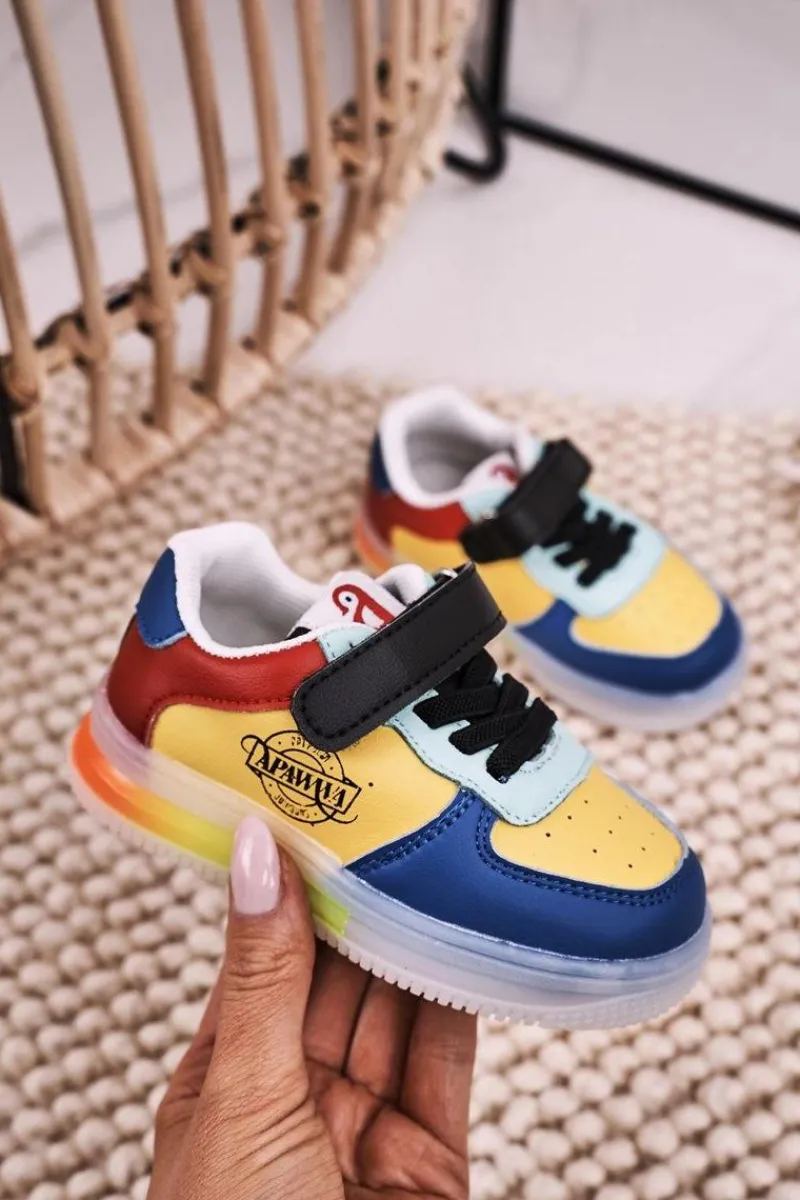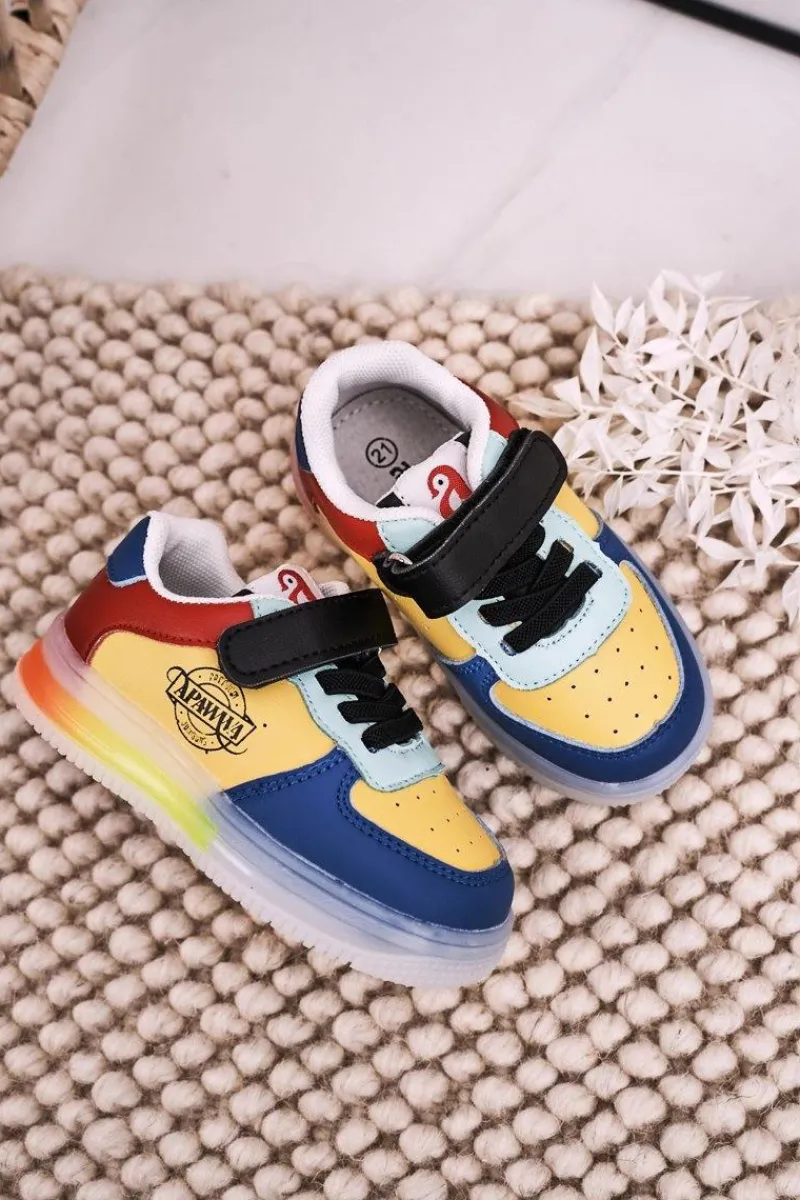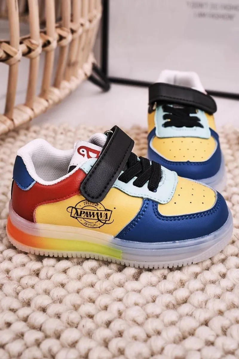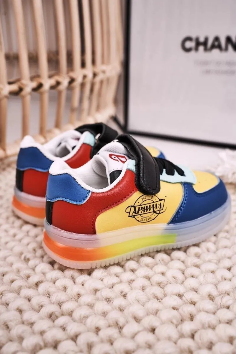 Dziecięce sportowe buty zapinane na rzep. Buty posiadają transparentną podeszwę z wbudowanymi światełkami LED. Buty wykonane są z wysokiej jakości eko skóry. Posiadają miękką, skórzaną wkładkę. Koniecznie sprawdź całą naszą kolekcję dziecięcych butów. Przy wyborze rozmiaru prosimy sugerować się tabelą rozmiarów.