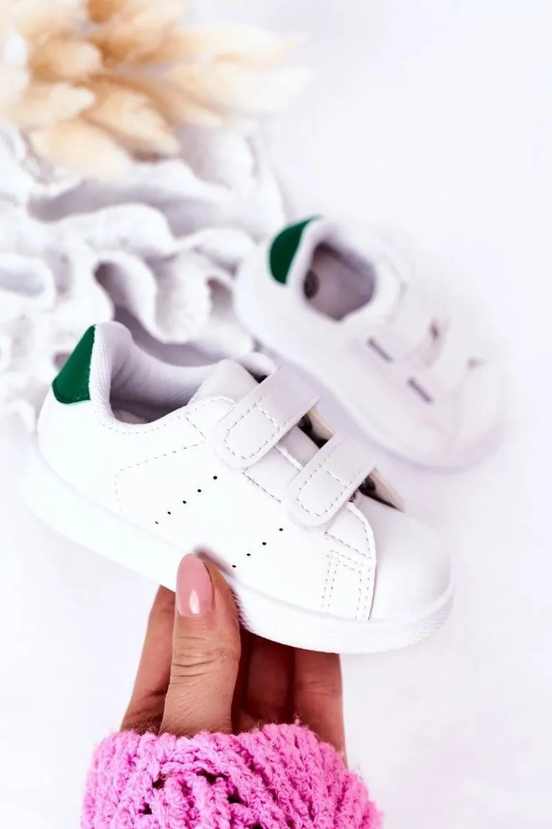 Wyjątkowe tenisówki dziecięce zapinane na rzepy. Trampki wykonane są z eko skóry, dobrze dopasowują się do kształtu stopy. Koniecznie sprawdź całą naszą kolekcję butów dziecięcych! Rozmiary od 30 do 35 posiadają zapięcie na trzy rzepy. Przy wyborze rozmiaru prosimy sugerować się tabelą rozmiarów.