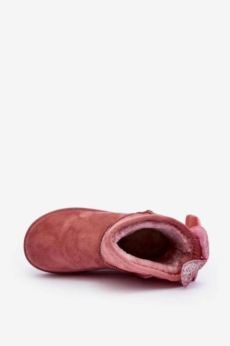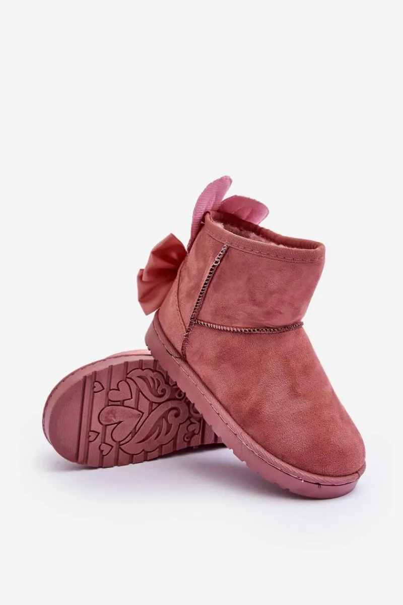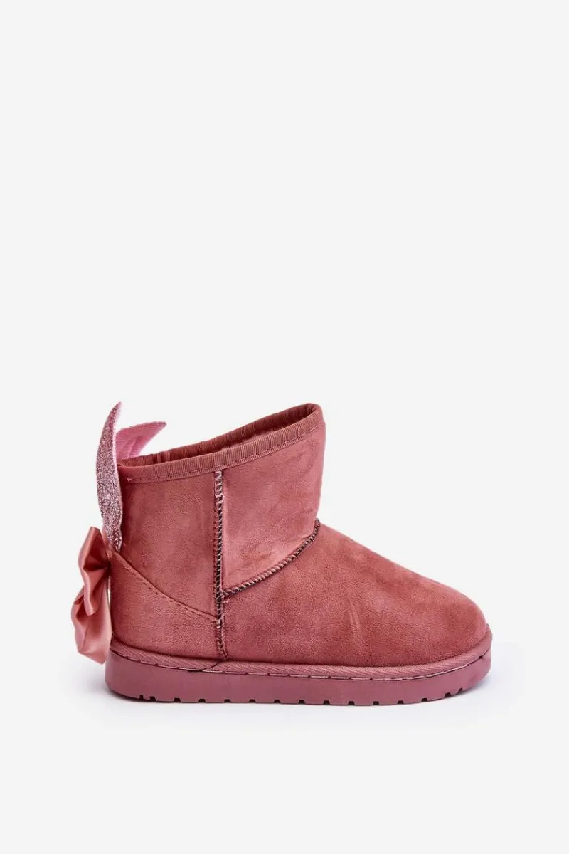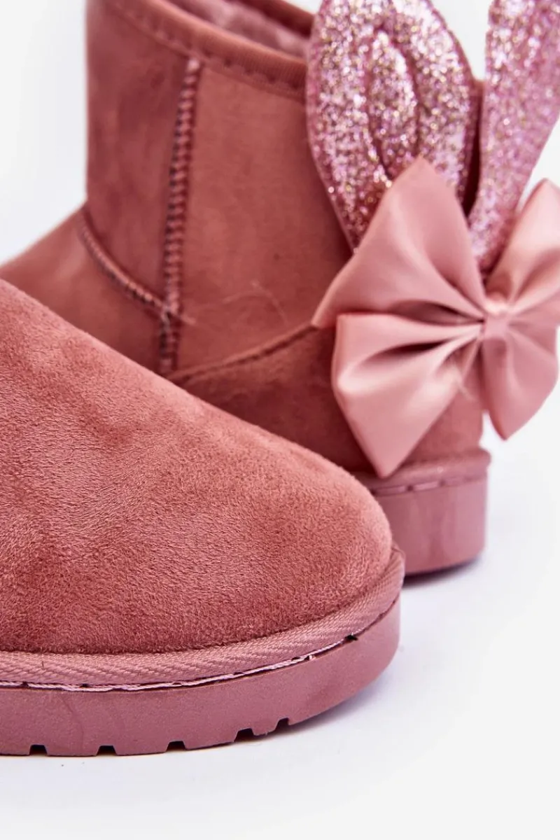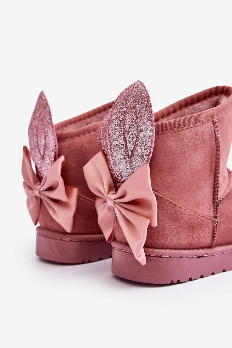 Podczas chłodnych dni warto zadbać o wygodne obuwie. Idealnym wyborem do zimowych zabaw będą urocze śniegowce na delikatnej platformie. Grube ocieplenie w postaci miękkiego futerka przyjemnie otuli stopy Twojej pociechy. Duża kokarda oraz błyszczące uszy z tyłu nadają całości niezwykle dziewczęcy charakter. Twoje dziecko będzie zachwycone tym modelem! Przy wyborze rozmiaru prosimy kierować tabelą rozmiarów.