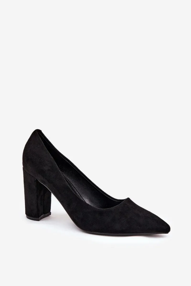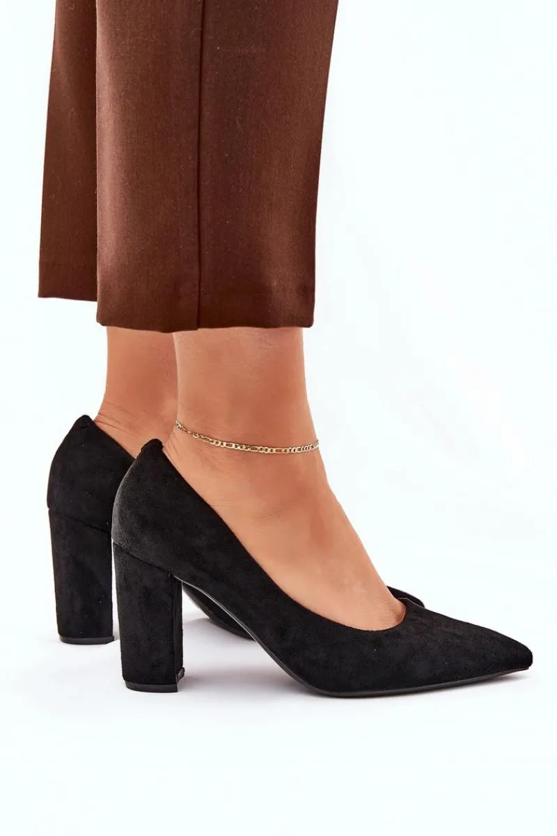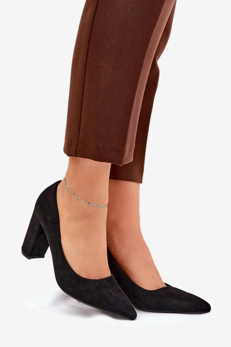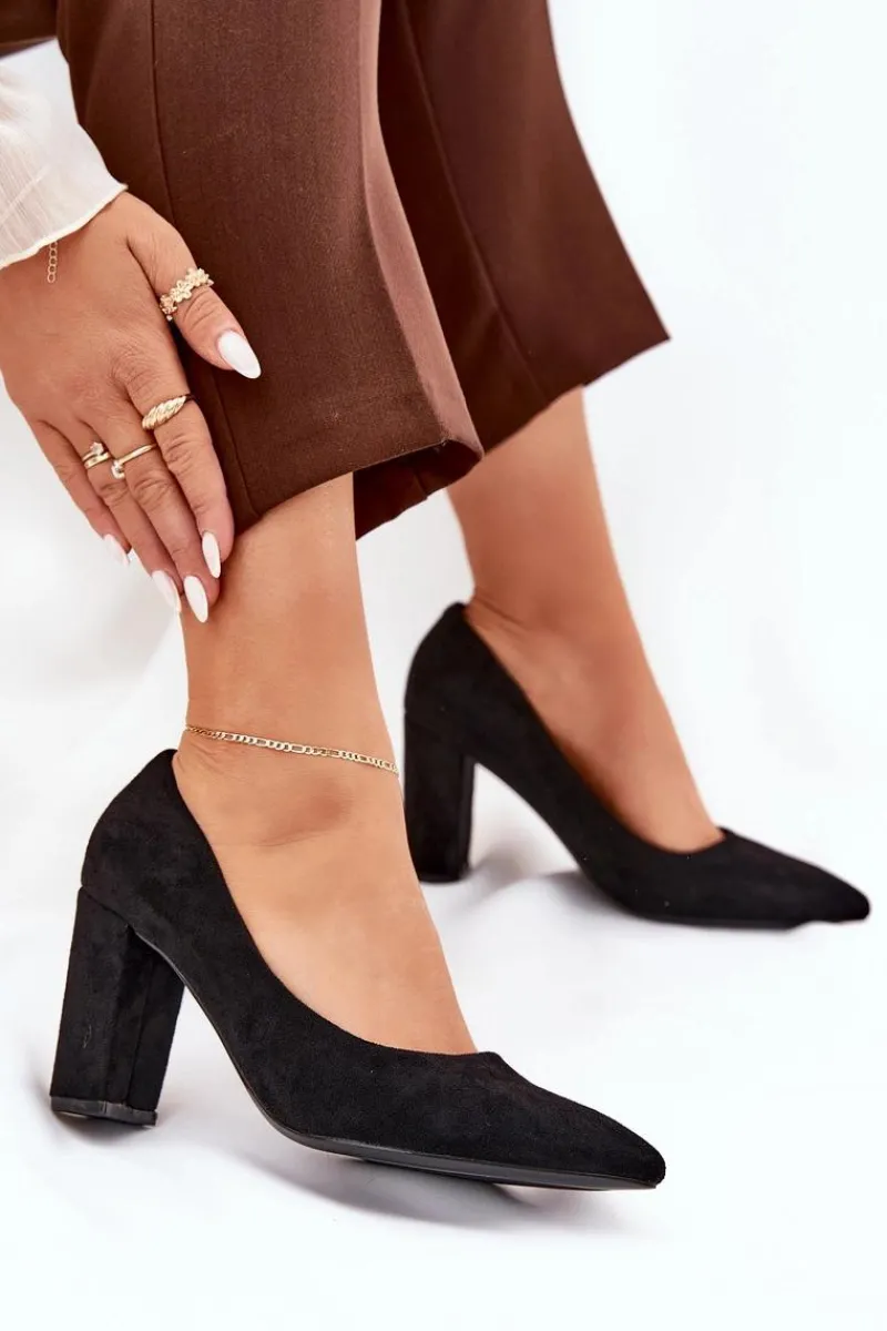 Czółenka wykonane z eko zamszu, osadzone na stabilnym obcasie typu słupek. Szpiczaste noski optycznie wysmuklają nogi, dodając sylwetce lekkości. Klasyczny fason sprawia, że będą idealnym wyborem na różne okazje – od formalnych spotkań po wieczorne wyjścia. Przy wyborze rozmiaru prosimy kierować się tabelą rozmiarów