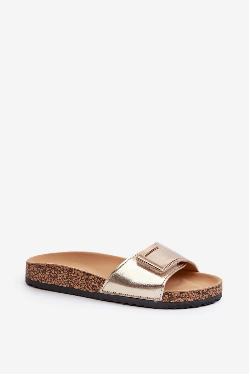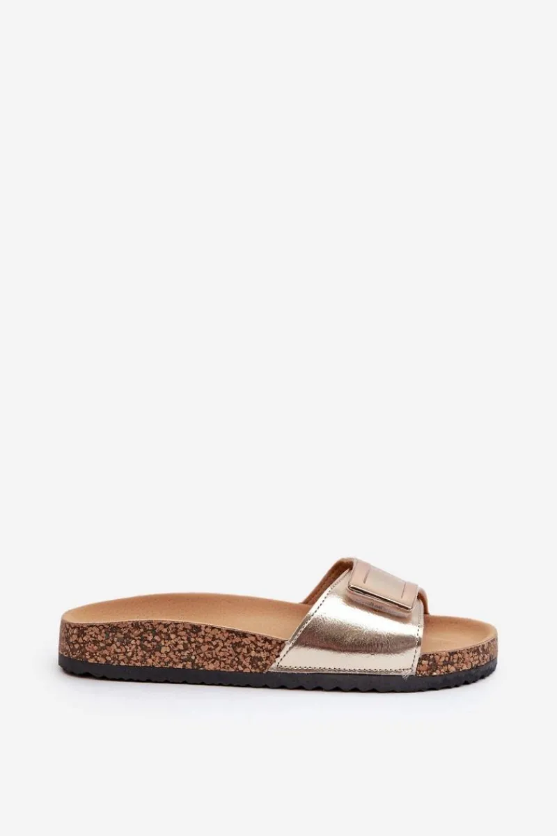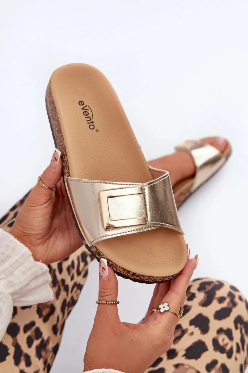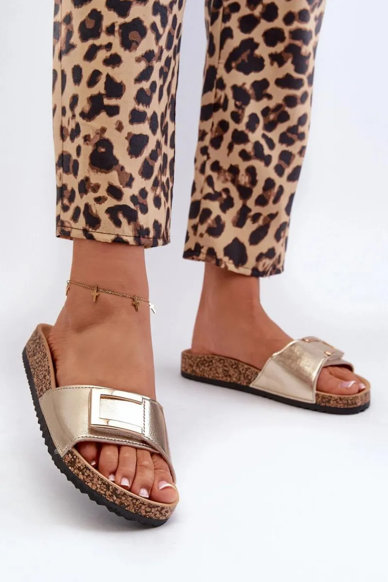 Klapki damskie na korkowej platformie to stylowy i wygodny wybór na letnie dni. Pasek z przodu zapinany na rzep gwarantuje łatwe i szybkie dopasowanie do stopy, zapewniając stabilność i komfort noszenia. Złota ozdoba, która dodaje im elegancji i wyrafinowanego wyglądu. Idealne na wiele okazji, od relaksujących spacerów po plaży po letnie spotkania z przyjaciółmi, te klapki doskonale uzupełnią letnią garderobę każdej kobiety. Przy wyborze rozmiaru rosimy sugerować się tabelą rozmiarów.