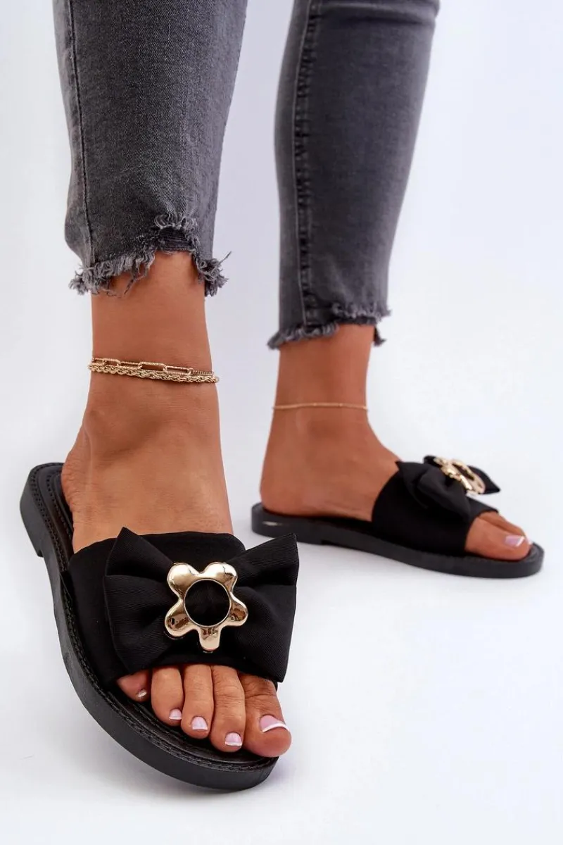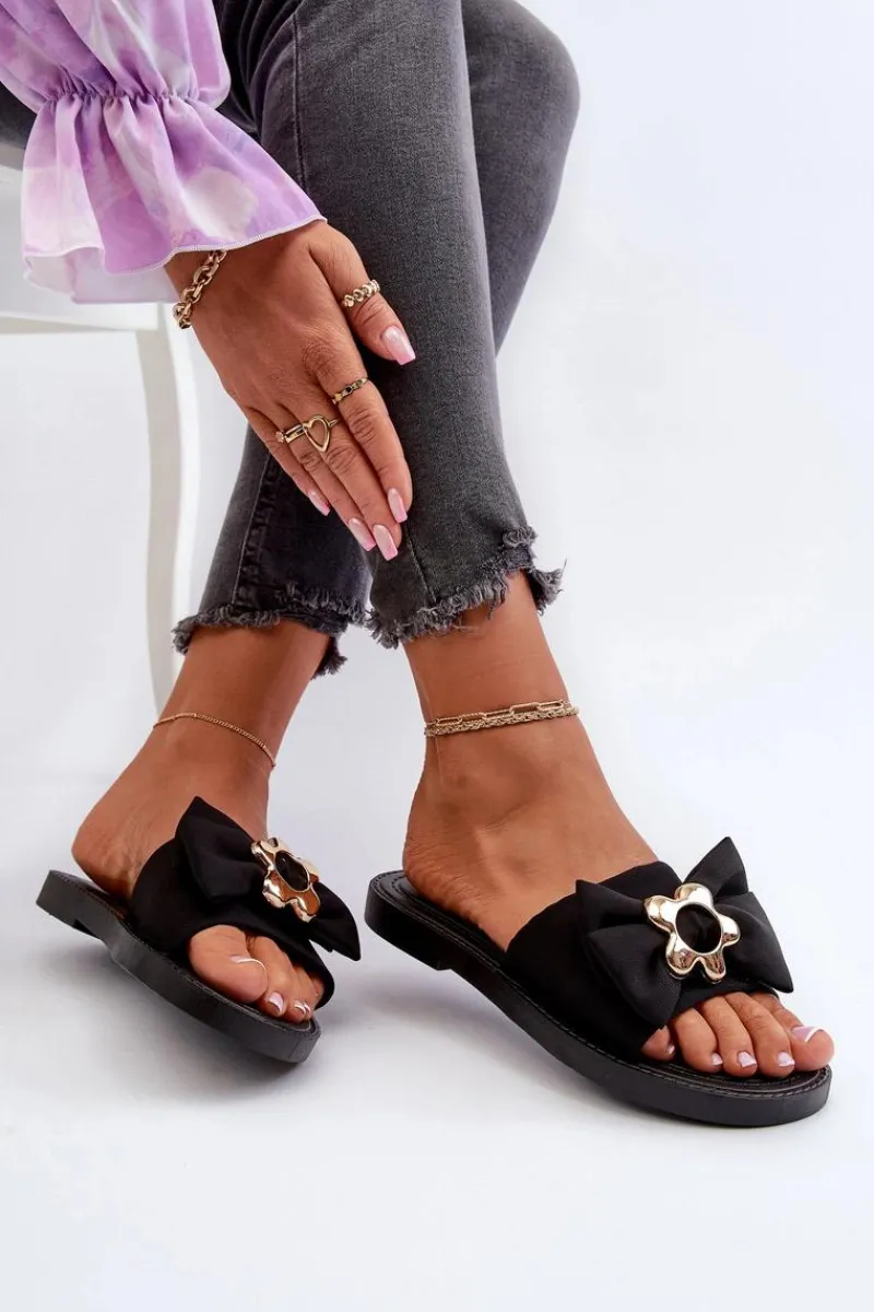 Best Boto Klapki Damskie Z Kokardą Czarne Arsicada