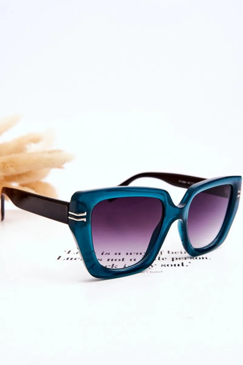 Klasyczne okulary przeciwsłoneczne damskie zostały wykonane z tworzywa sztucznego. Posiadają zdobienia na ramkach przy soczewkach. Model o modnym fasonie świetnie sprawdzi się do codziennych stylizacji podczas słonecznych dni, zarówno latem, jak i zimą. Informacja od producenta: ochrona UV, kategoria 3.