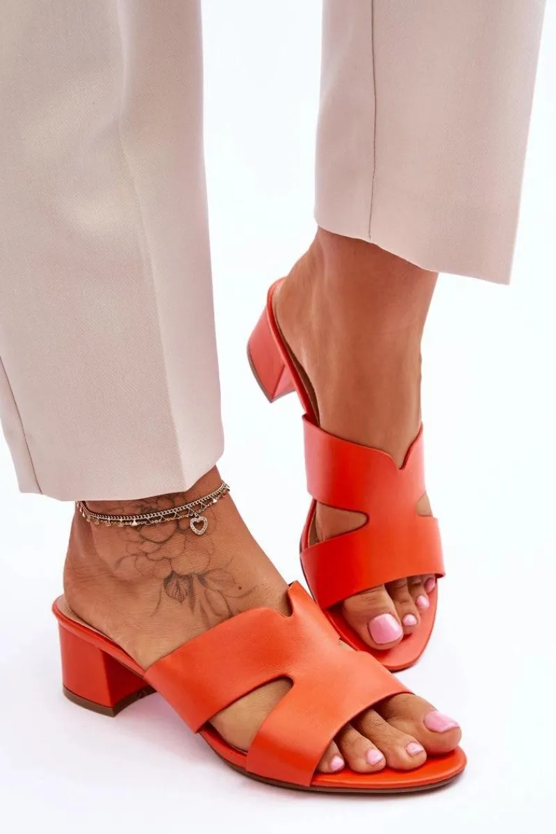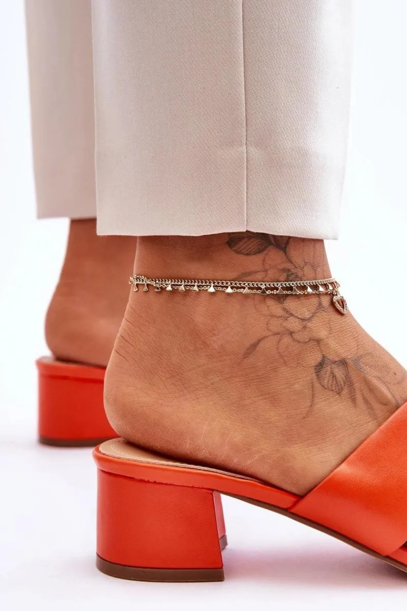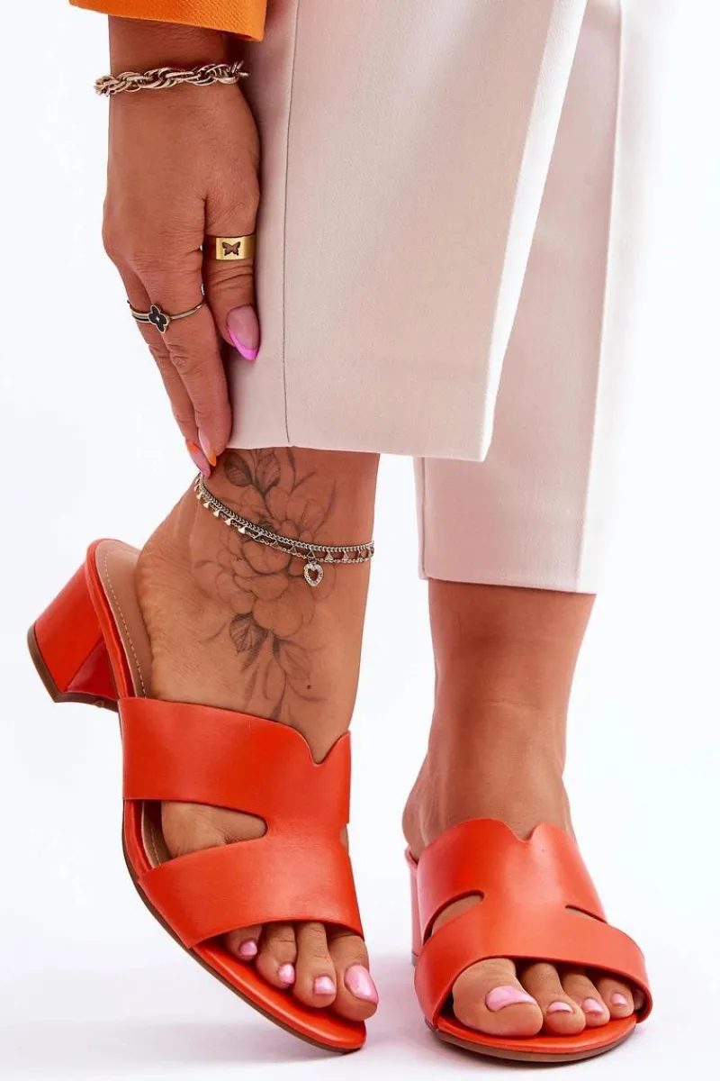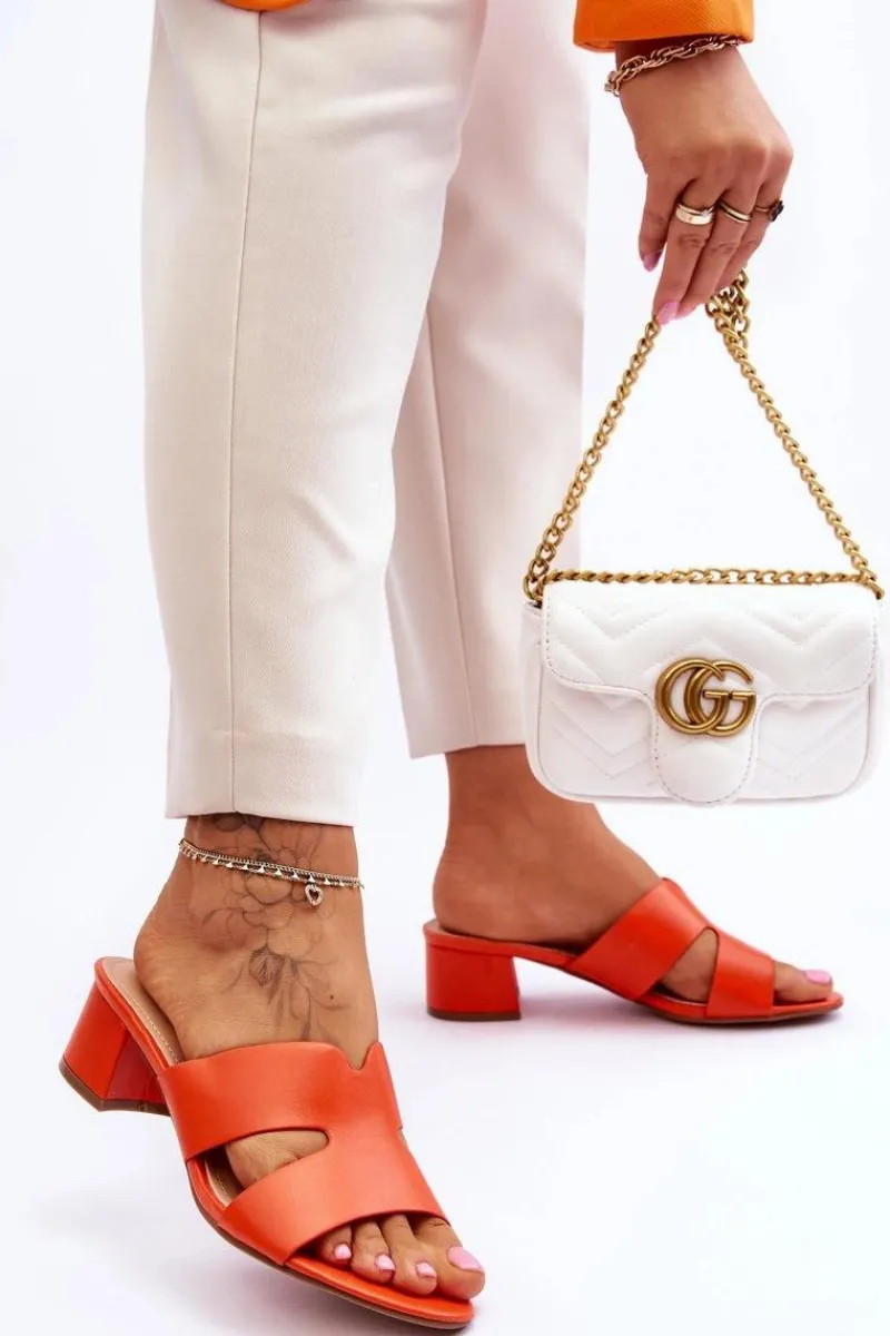 Klasyczne klapki na obcasie wykonane w całości z eko skóry. Posiadają wycięcia z boku cholewki. Miękka wkładka zapewni wygodę nawet przez cały dzień. Prosty, klasyczny fason osadzony na niskim słupku. Klapki te posiadają odkryty, zaokrąglony nosek. Ten moden świetnie sprawdzi się w wielu stylizacjach. Przy wyborze rozmiaru prosimy kierować się tabelą rozmiarów.