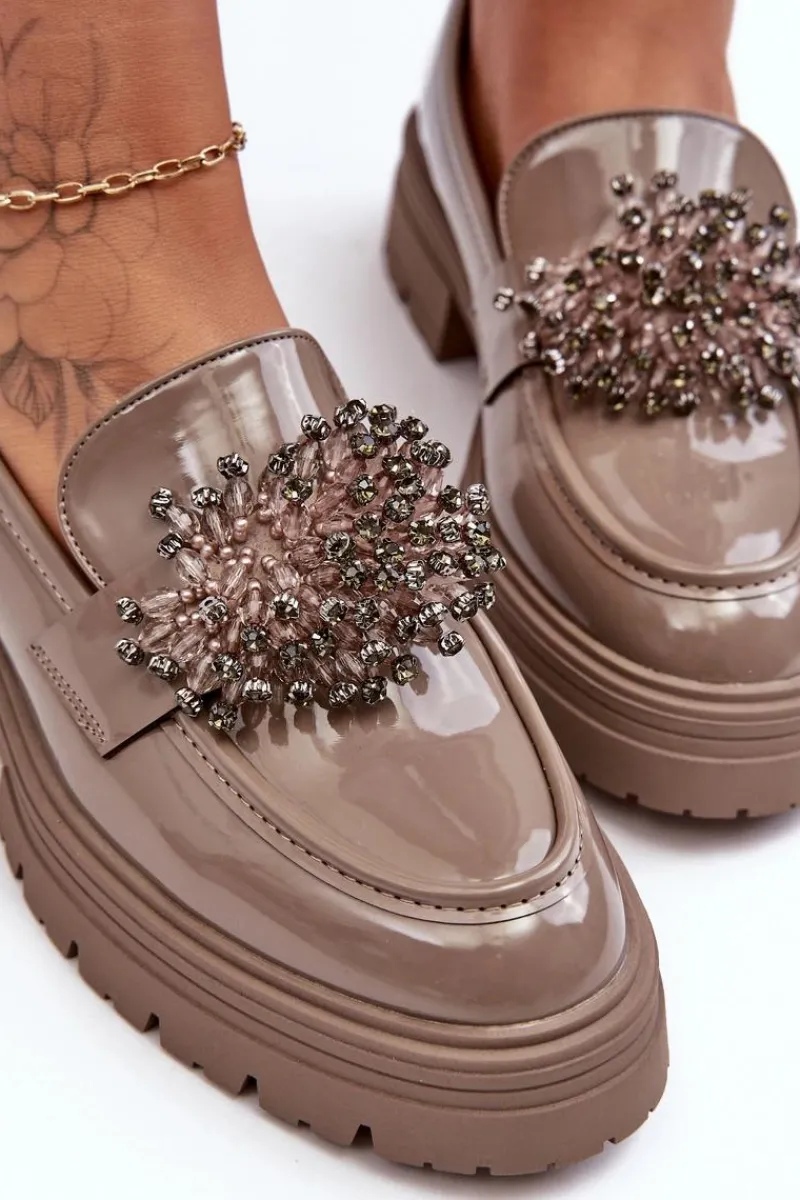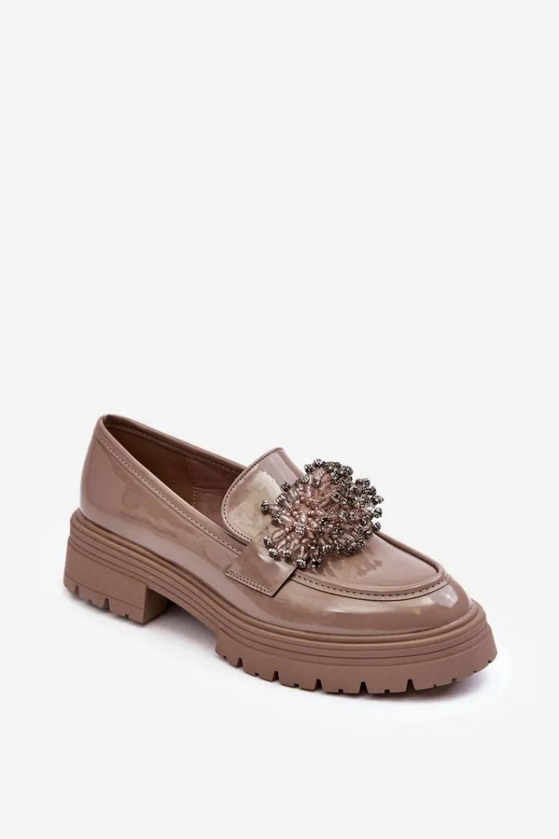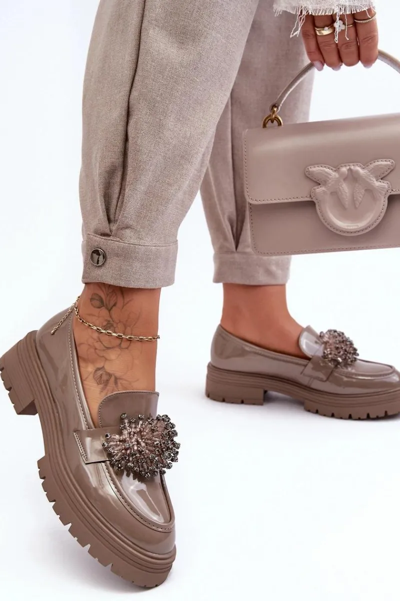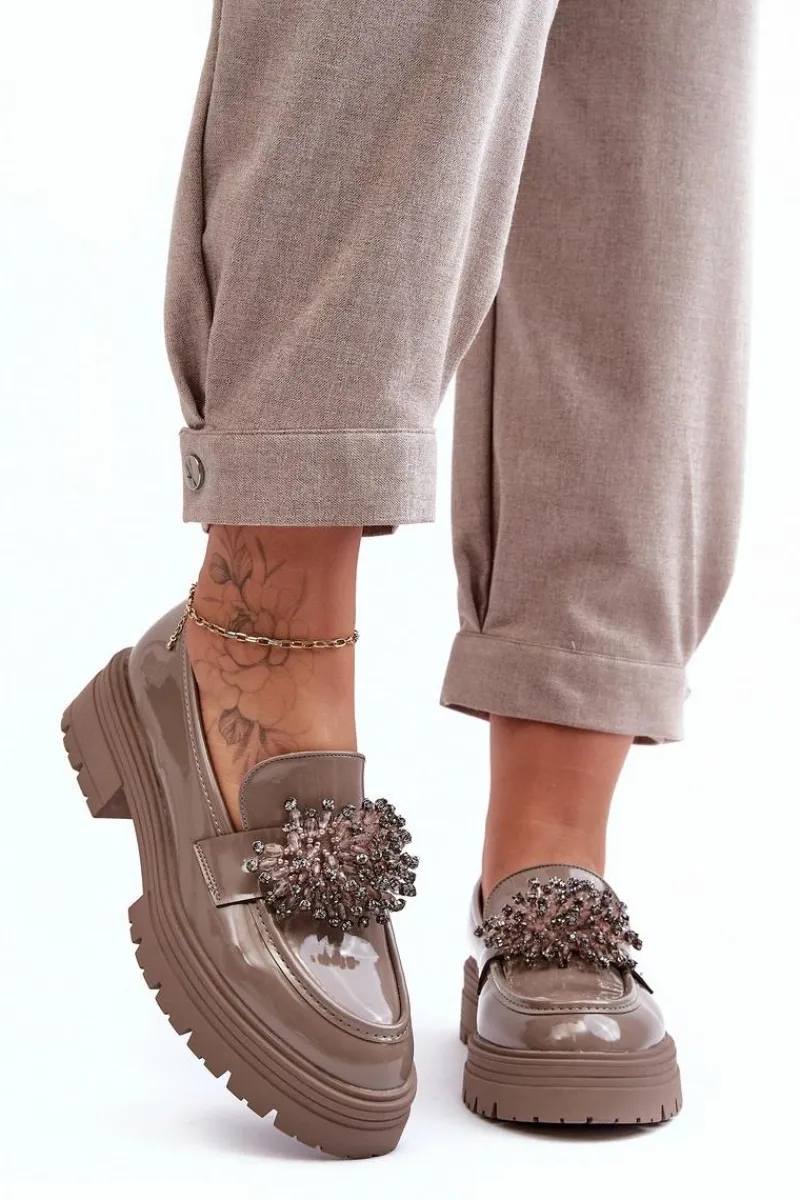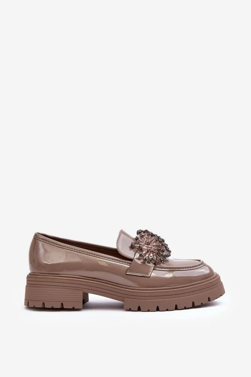 Klasyczne damskie półbuty wykonane z eko skóry. Osadzone na grubej podeszwie i płaskim obcasie. Noski w migdał. Wygodna eko skórzana wkładka zapewni komfort podczas użytkowania. Z przodu na pasku ozdoba. Model ten będzie idealny niemalże do każdej jesiennej stylizacji! Przy wyborze rozmiaru prosimy sugerować się tabelą rozmiarów.