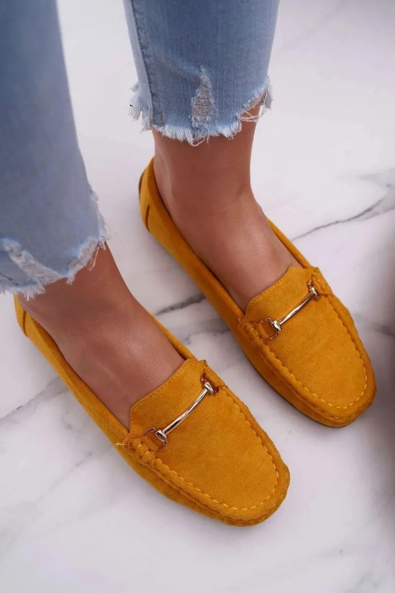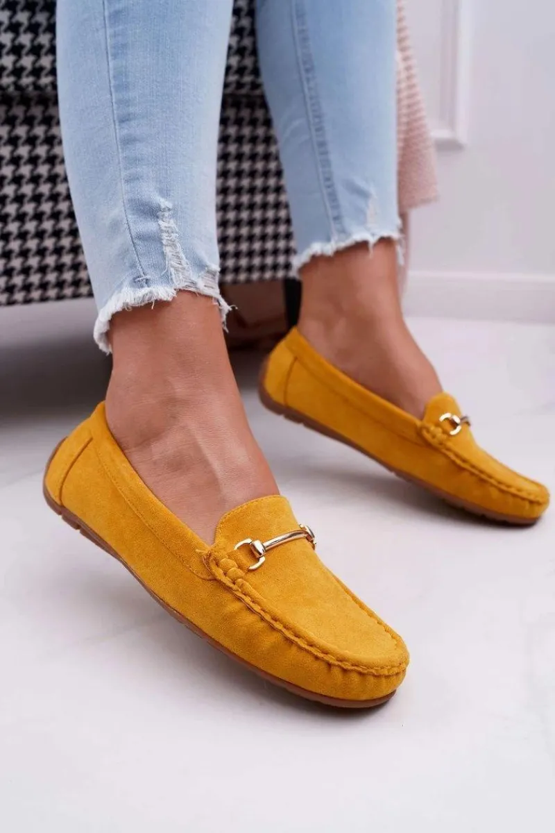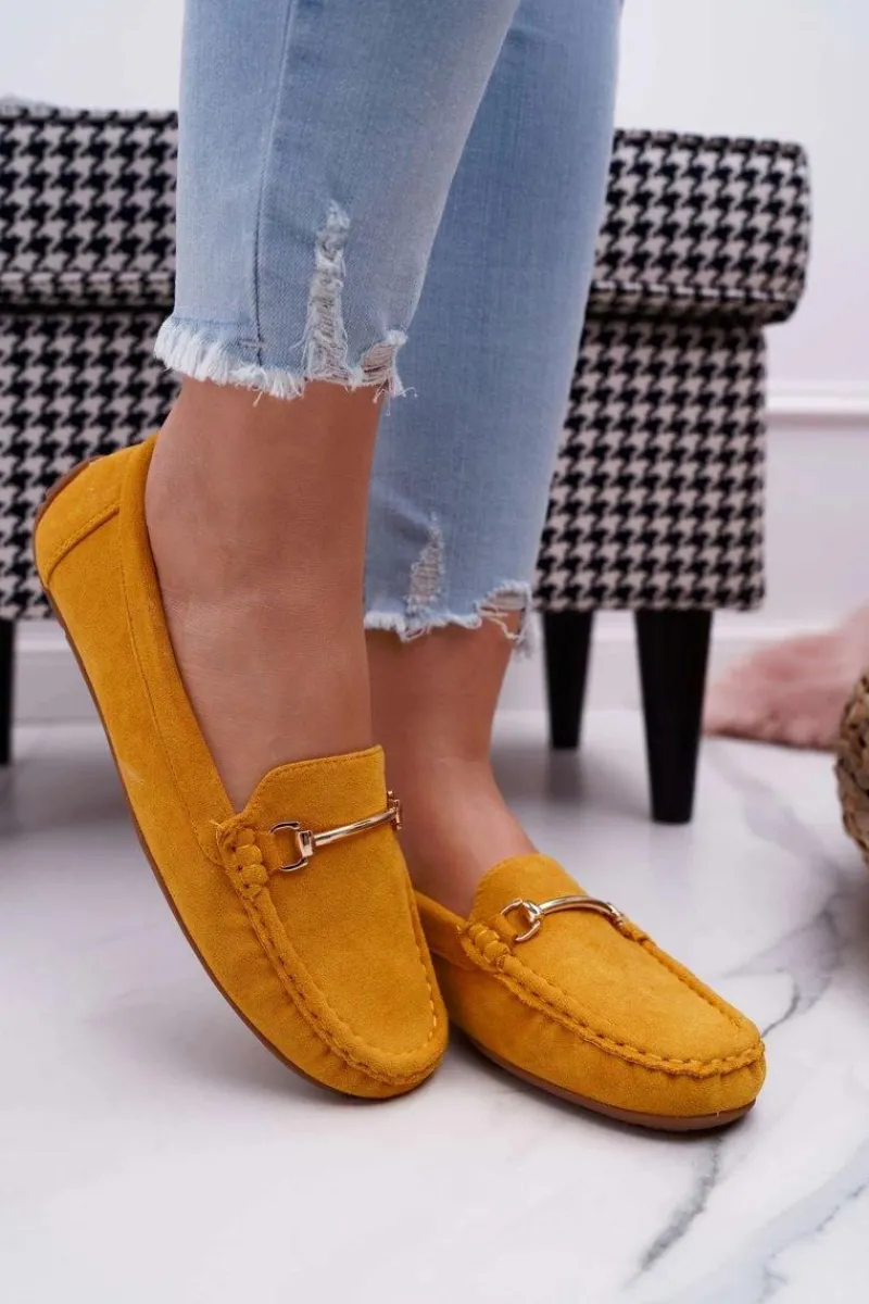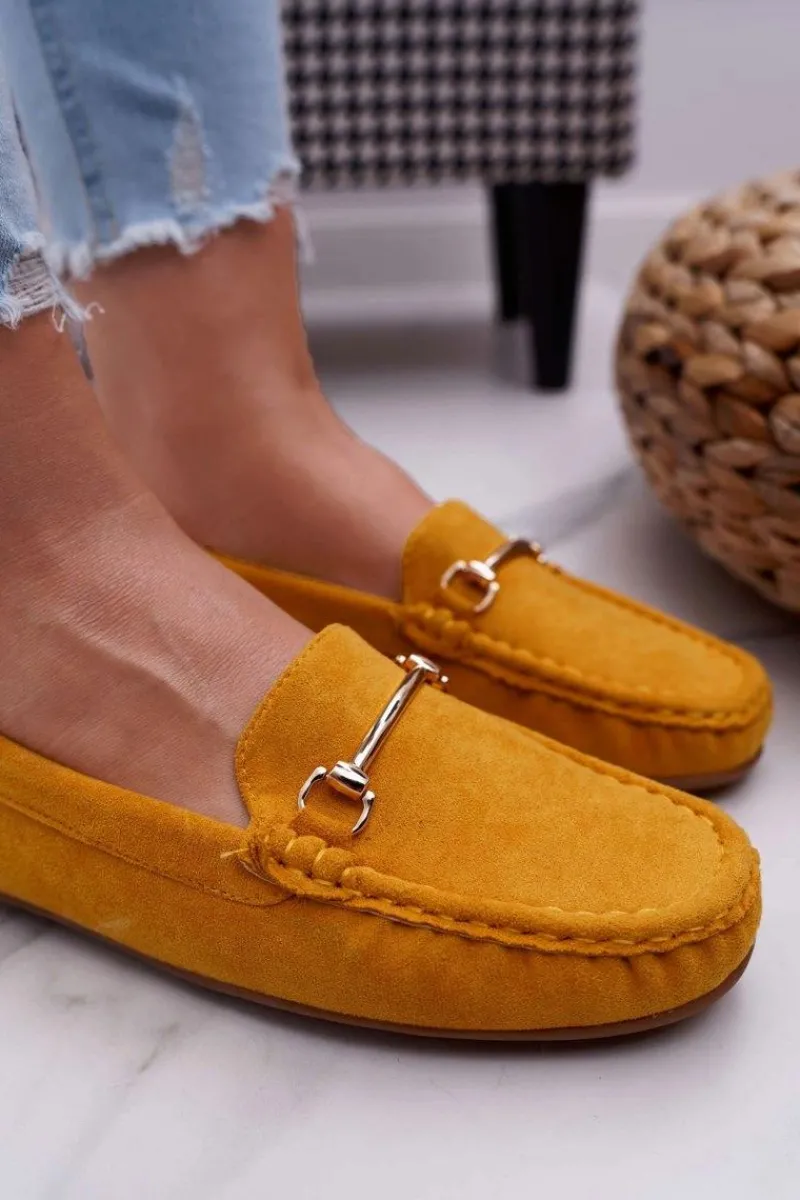 Best Boto Mokasyny Damskie Żółte Zamszowe Sonnero
